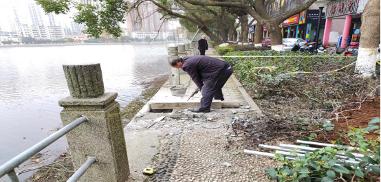 设施设备维修小组对公园栏杆、座椅、地砖、园路等公共设施开展拉网式排查,及时做好修补更新,截至目前,已完成了60%维修工作,本月底完成扫尾工程,基本保障了公园设施安全和运行秩序。