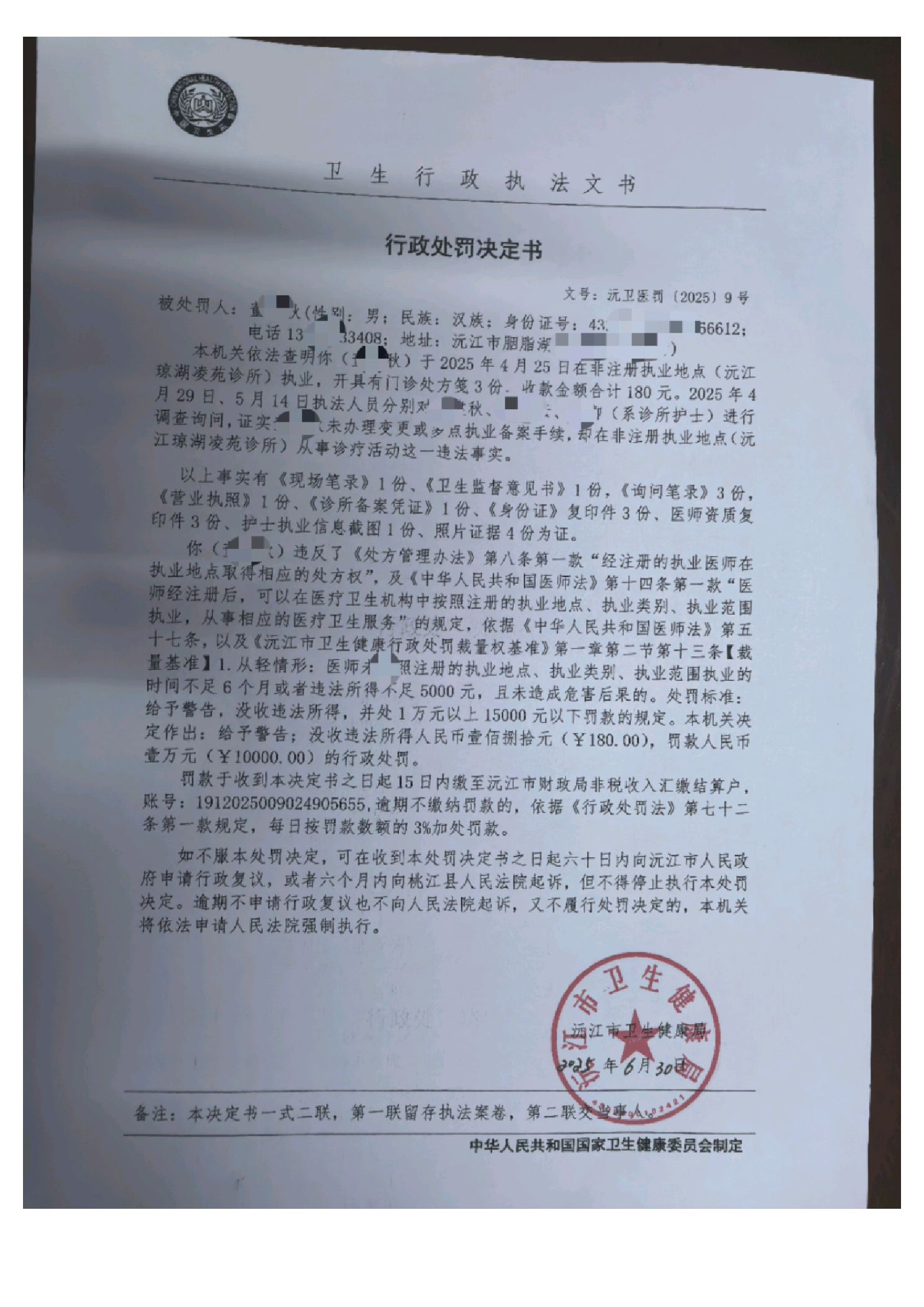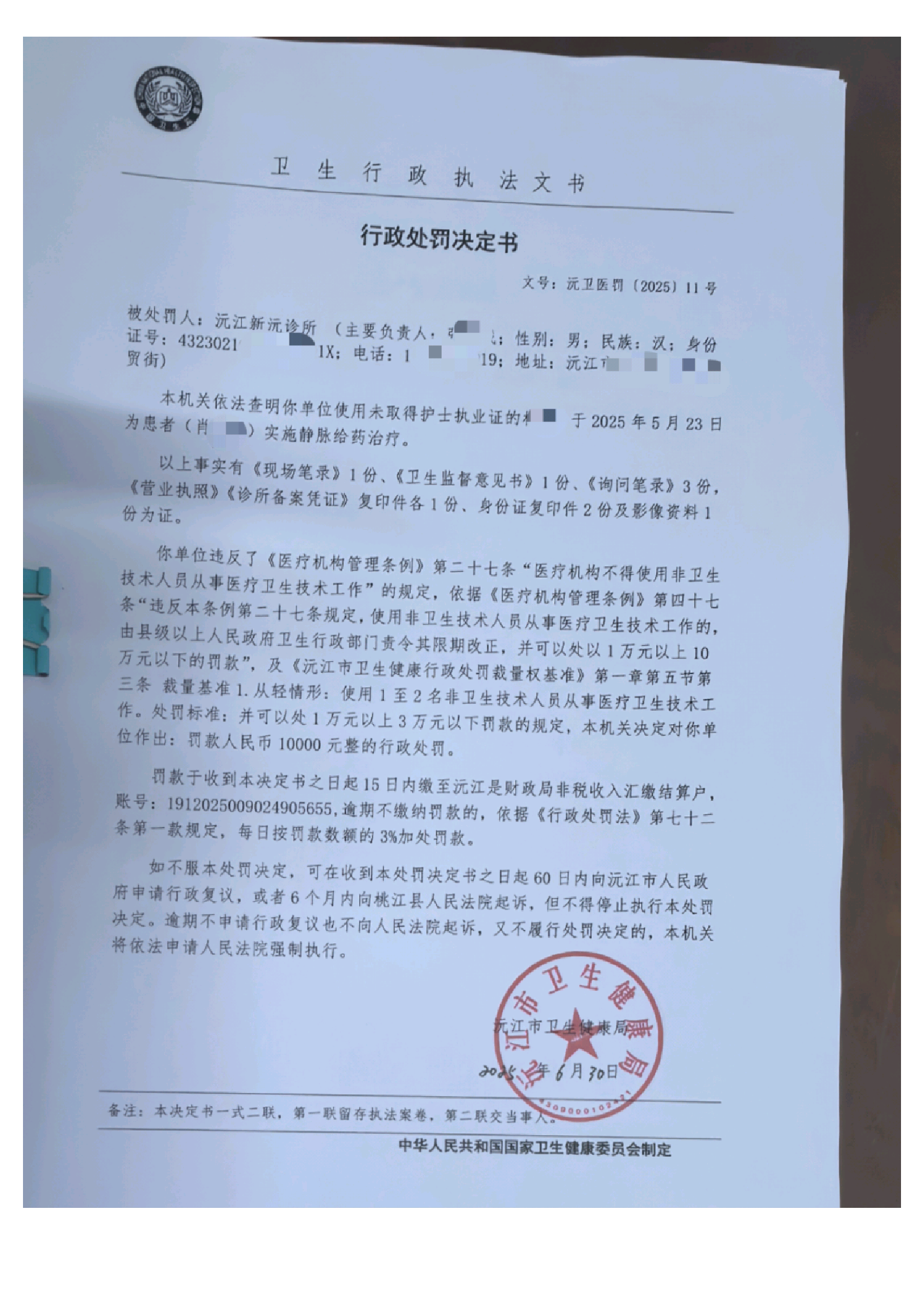 2025卫生行政处罚公示(第四批)