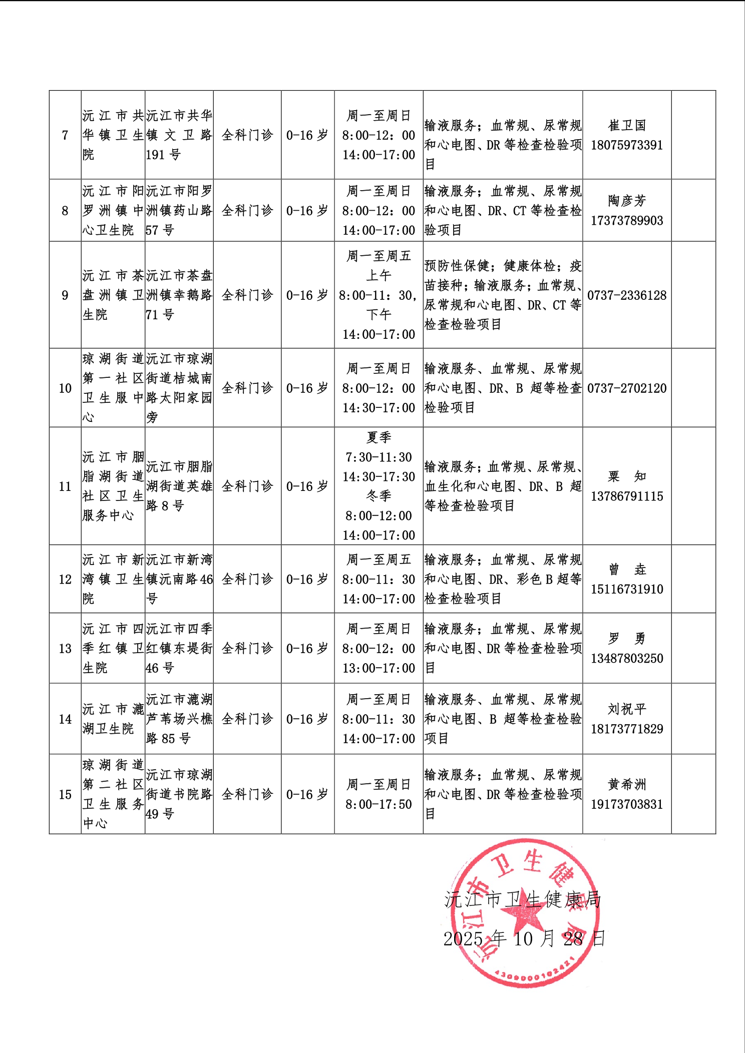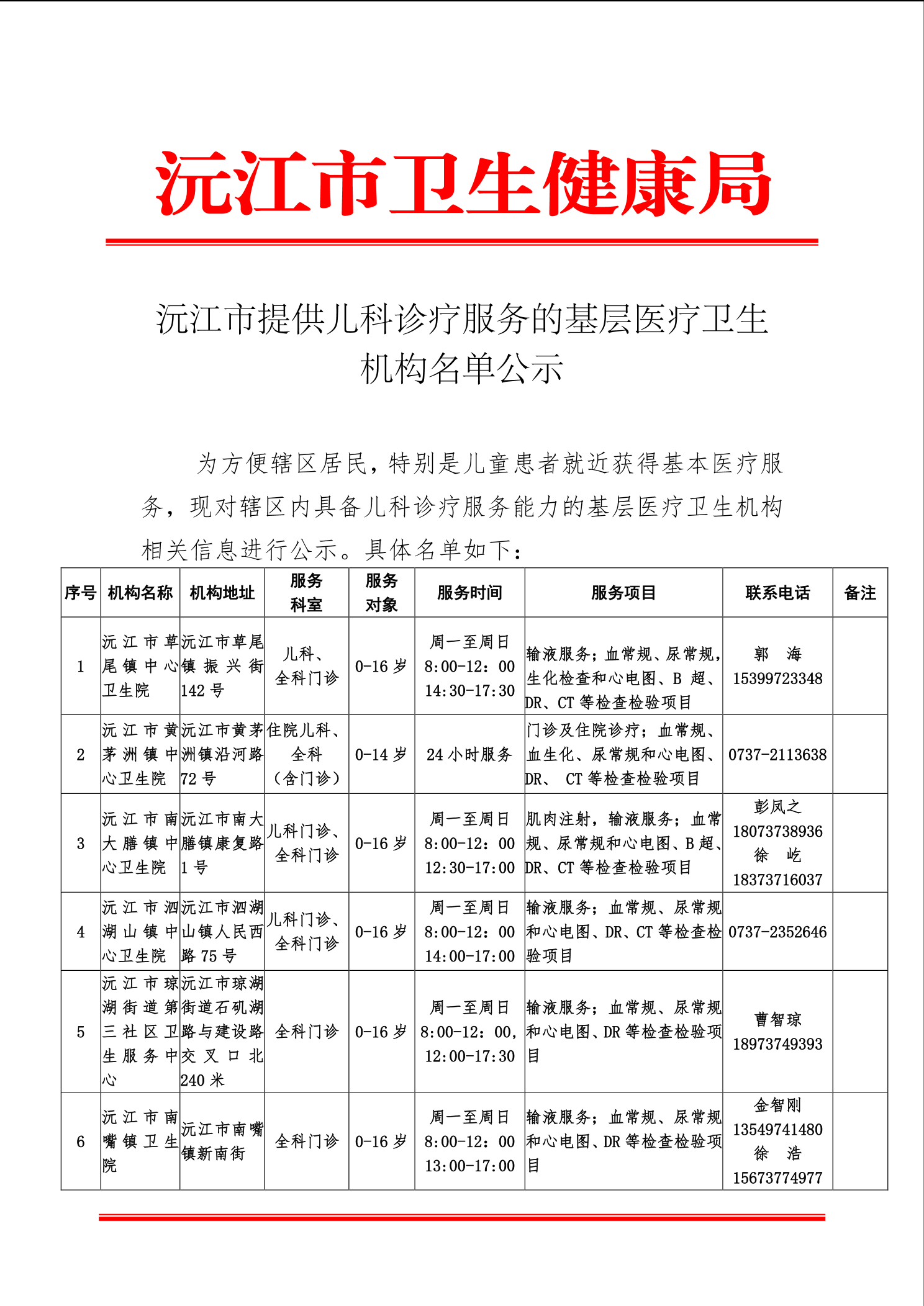 沅江市提供儿科诊疗服务的基层医疗卫生机构名单公示