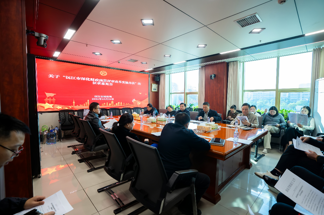为持续深化我市零基预算和预算管理制度改革工作,提高项目预算评审、编制及支出的科学化、规划化水平,增强财政资源统筹力,预算控制约束力和风险防控能力。近期,市财政局组织召开《沅江市深化财政预算评审改革实施办法》(以下简称《实施办法》)征求意见会,市财政局党组成员、副局长廖跃军主持会议,相关业务股室负责人参加。