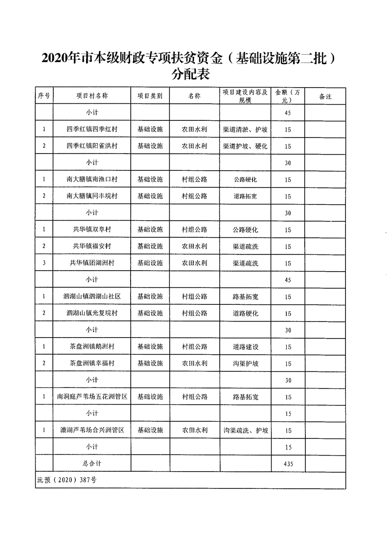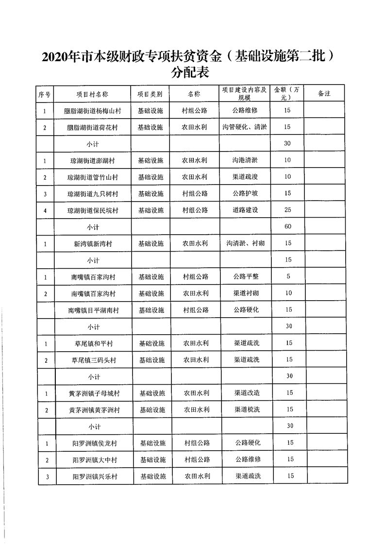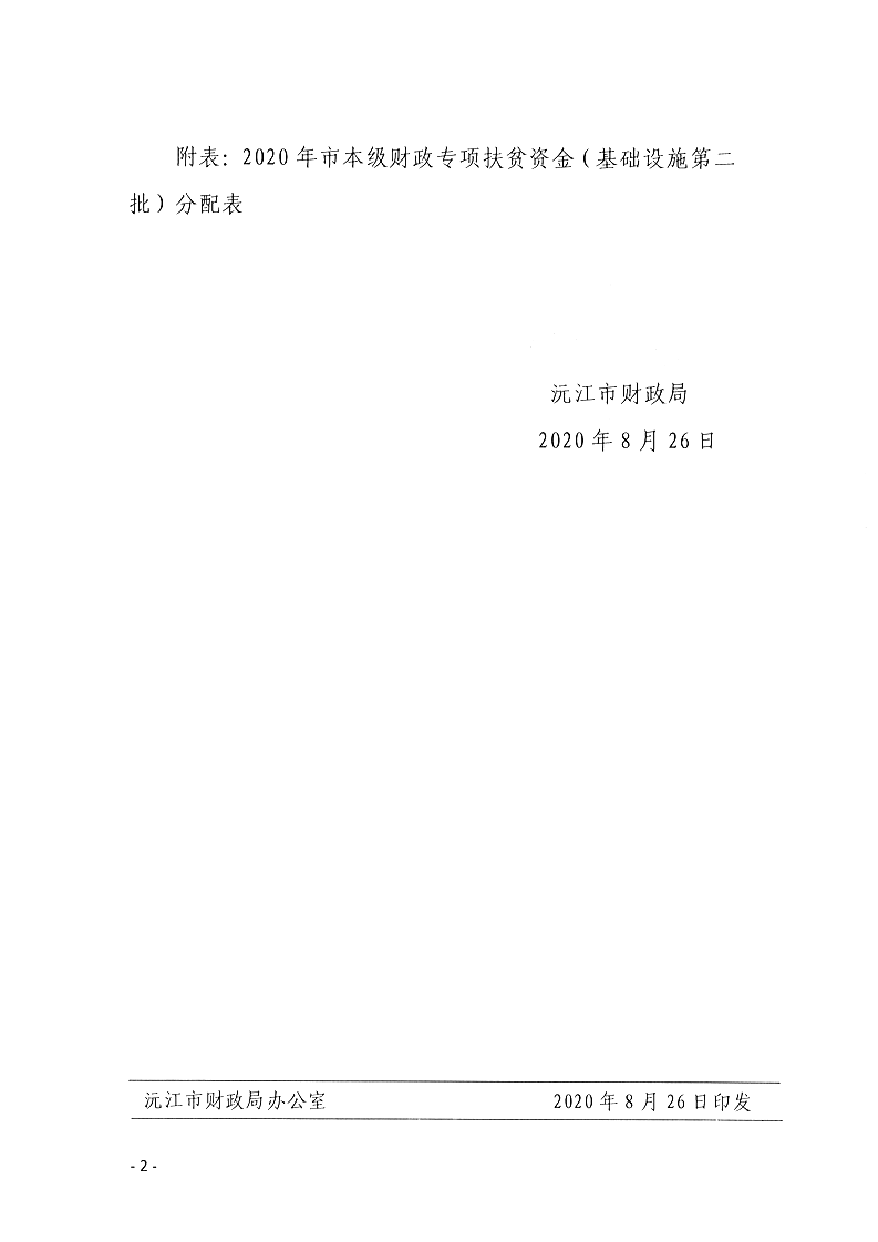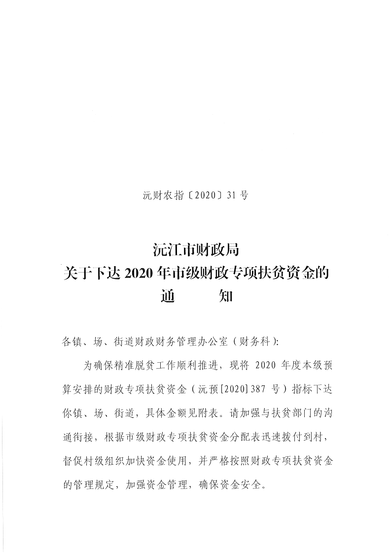 沅财农指【2020】31号 沅江市财政局关于下达2020年市级财政专项扶贫资金的通知