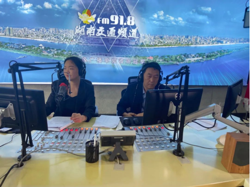《交通直播室》主持人 贺星(左)湖南省人力资源和社会保障厅工伤保险处处长 廖云飞(右)