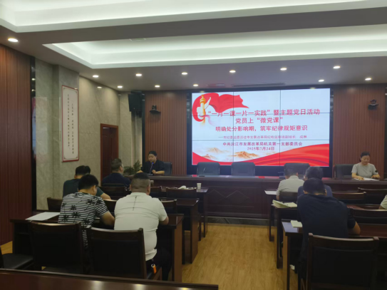 7月24日上午10时,机关第一支部在局机关二楼会议室隆重开展七月主题党日暨“一月一课一片一实践”活动。本次活动由支部书记刘碧主持,全体党员积极参与,通过一系列丰富多样的环节,强化了党员的党性修养,筑牢了纪律规矩意识。