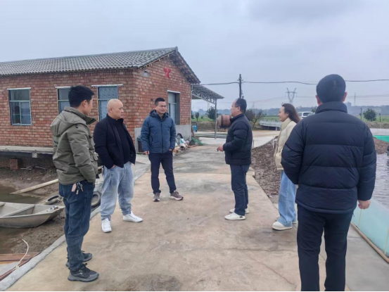 3月3日,沅江市畜牧水产事务中心主任曹建华、副主任邱晨率水产技术推广站工作人员,开展水产产业集群项目施工工作指导。