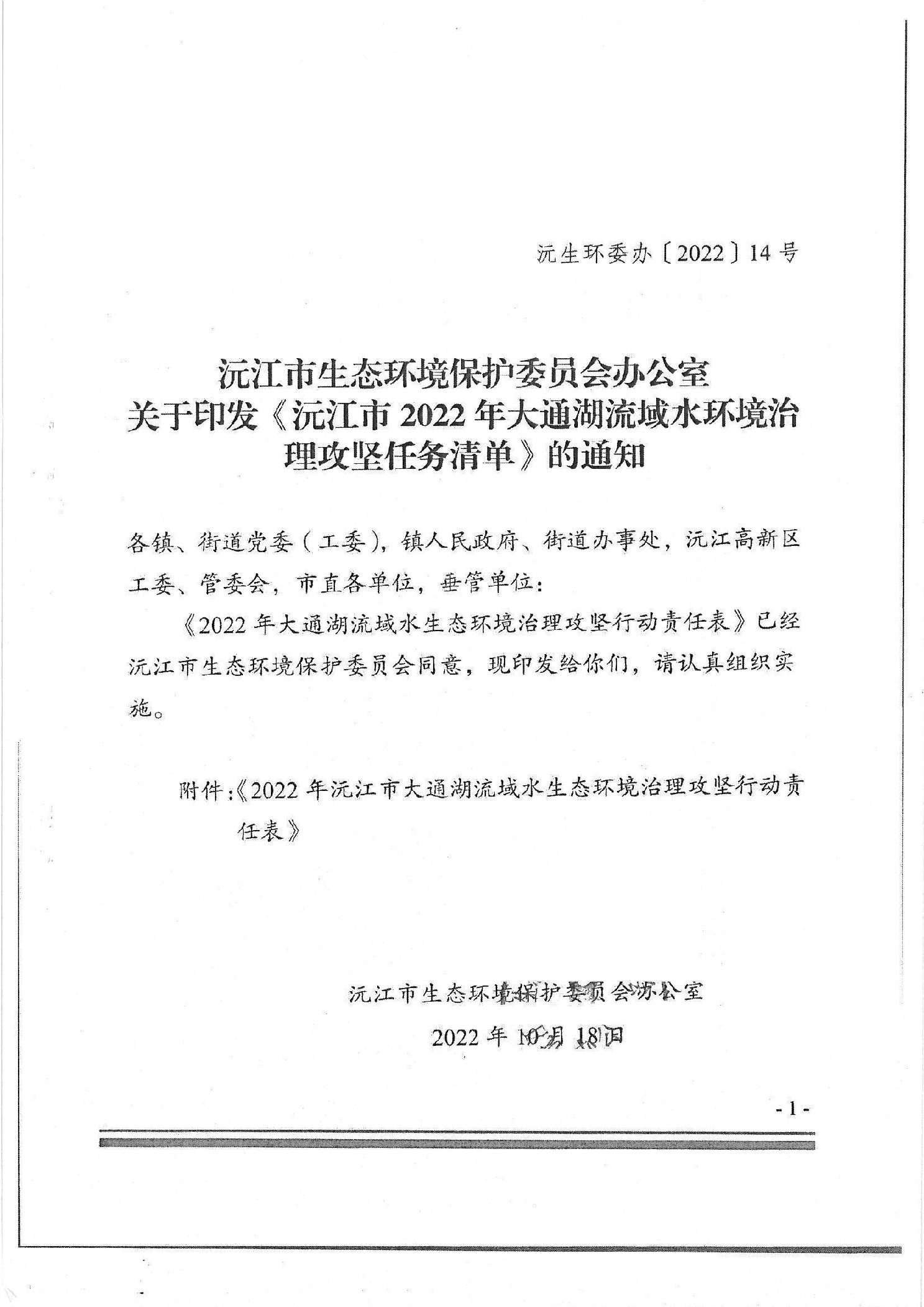转:沅江市生态环境保护委员会办公室关于印发《沅江市2022年大通湖流域水环境治理攻坚任务清单》的通知