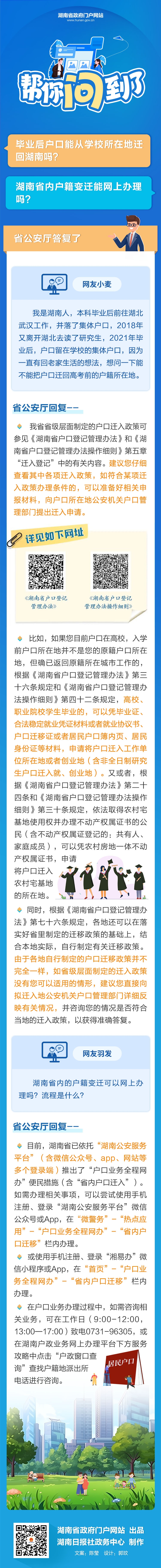 毕业后户口能从学校所在地迁回湖南吗?帮你问到了!