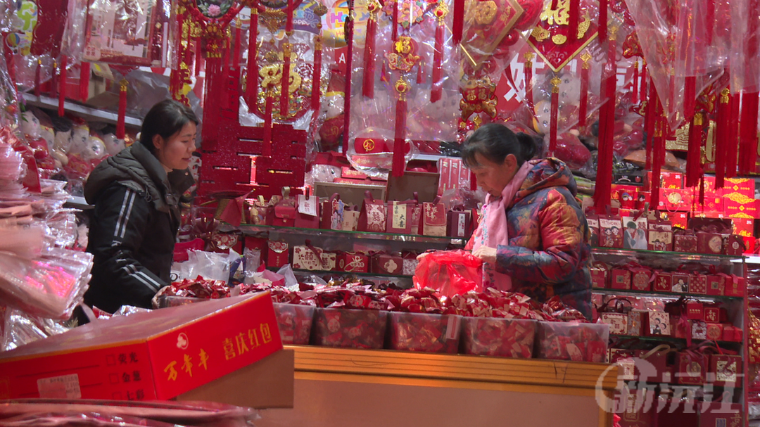 在湘北市场门口,一排排红彤彤的对联摊位格外引人注目。商家们精心筹备,从蛇年生肖节庆用品到春联、灯笼、挂饰等新春装饰品一应俱全,吸引了众多顾客驻足挑选。顾客们手中拿着精心挑选的对联,脸上洋溢着幸福的笑容,浓浓的春节氛围在此处蔓延,消费热度也不断攀升。市民伍世华表示:“今年的年货比往年还要丰富些,数量也多,也不贵。” 市民郭佳也说道:“外地的人都回来了,市场上人山人海,很热闹,年货非常多,种类也很多。”