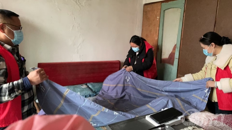 活动当天,南洲街社区工作人员深入到困难群众家中,每踏入一户,都与居民们亲切交谈,细致询问他们的身体状况、家庭生活现状以及面临的实际困难。在交流过程中,工作人员还不忘叮嘱居民们要保重身体,时刻注意家中用火用电安全,一句句暖心话语,让困难群众深受感动。同时,工作人员还为困难群众送去大米、食用油等生活必需品,并贴心地为他们更换新的被套,用实际行动给予关怀。
