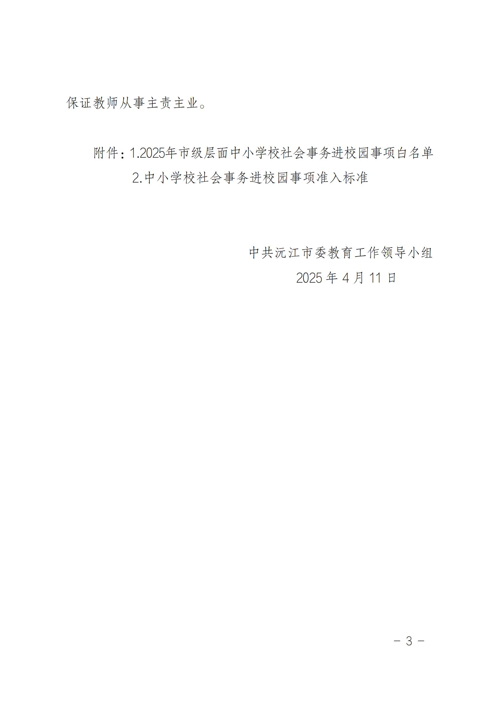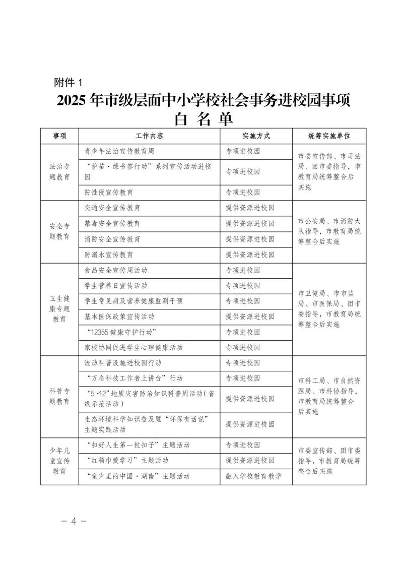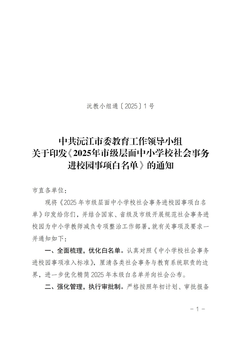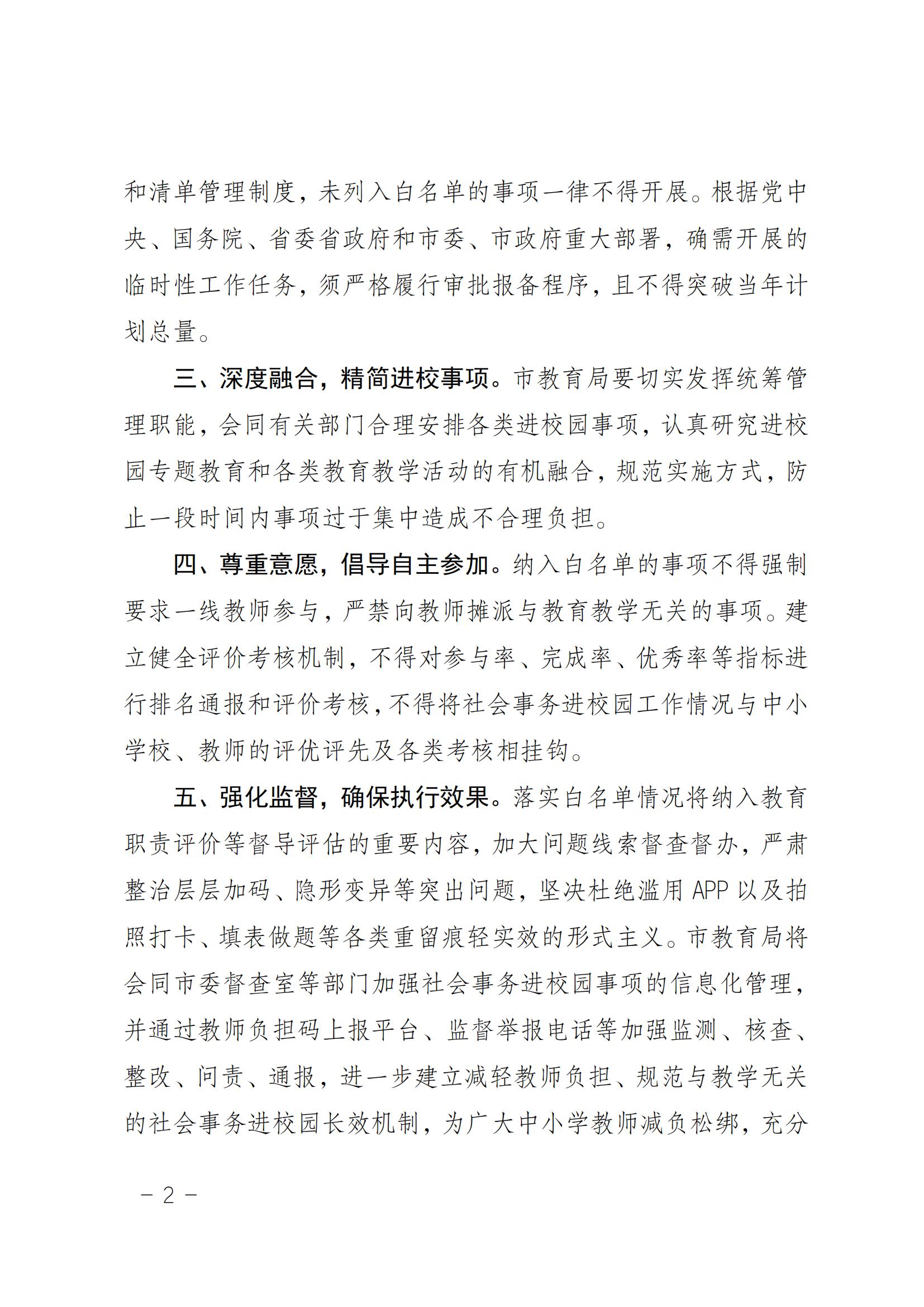 关于印发《2025年市级层面中小学校社会事务进校园事项白名单》的通知