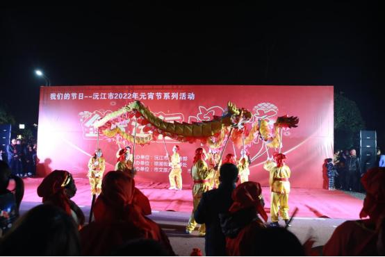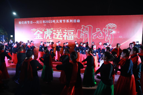 正月十五晚七时,沉浸于暮色的小河嘴村,枝头屋檐装点得流光溢彩,每一处都烘托出热烈喜庆的节日氛围,随着一条年味浓厚的灯笼走廊,来到了“我们的节日---沅江市2022年元宵节系列活动”之“金虎送福闹元宵”传统民俗文化大汇演活动现场,在震撼的锣鼓声中,彩龙以腾云驾雾之势入场,时而盘旋、时而腾起,引来围观的群众阵阵雷鸣般掌声和叫好声,《拜年》、《刘海砍樵》等经典花鼓戏片段轮番上演,老干艺术团的演员们带来了《我是沅江人》、《蝶恋花》等精彩歌舞节目,赢得数千观众的热烈掌声和满堂喝彩声。
