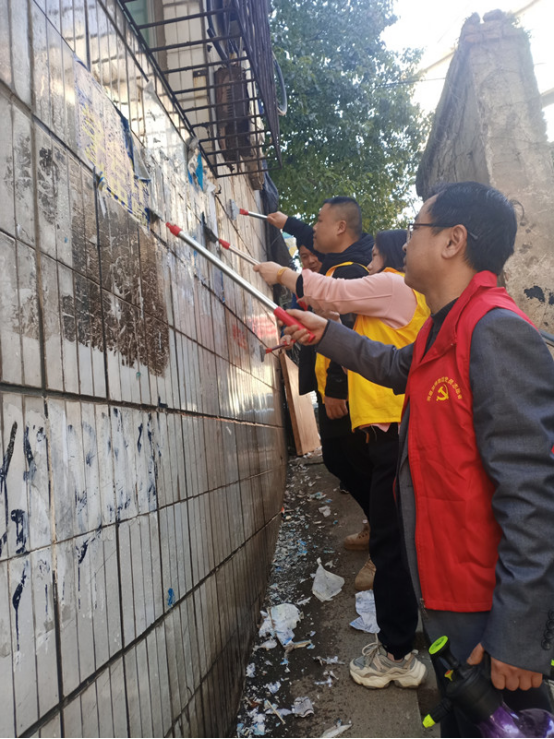 这些小广告真难清理,大多数都是用不干胶粘贴的,要先用清水湿化,再用铲刀使劲清除。经过几个小时的努力,各个小区街道、楼道的墙面又回到了干净面貌,志愿者的辛勤劳动换来社区的清洁,也算为群众办了一次实事。