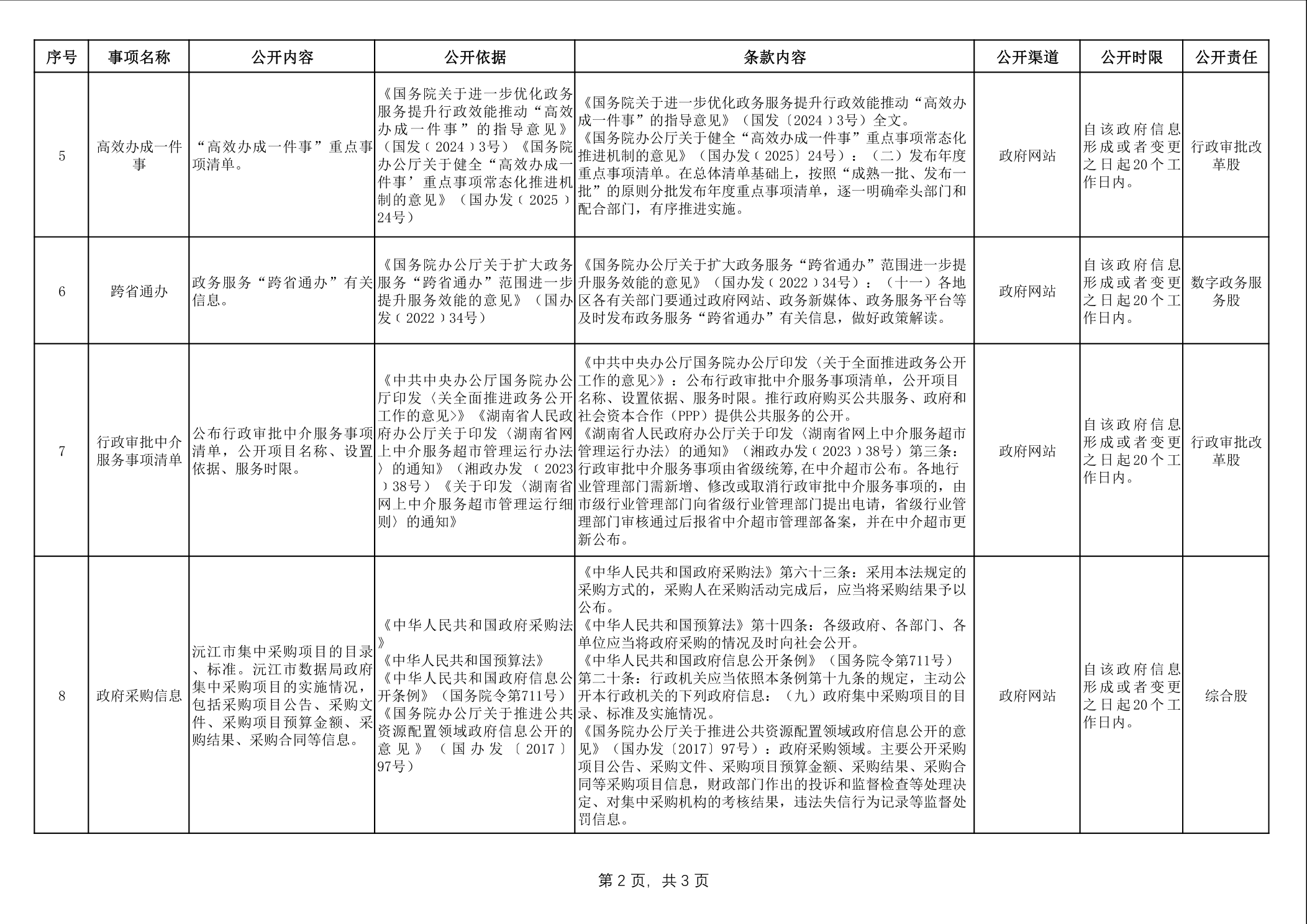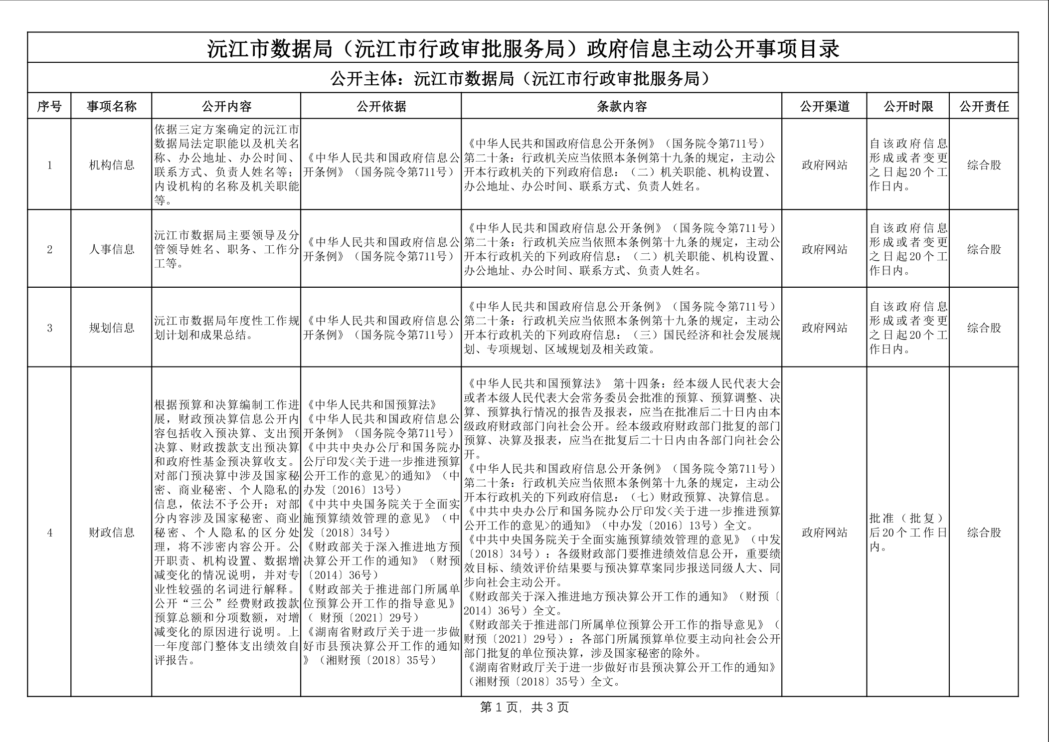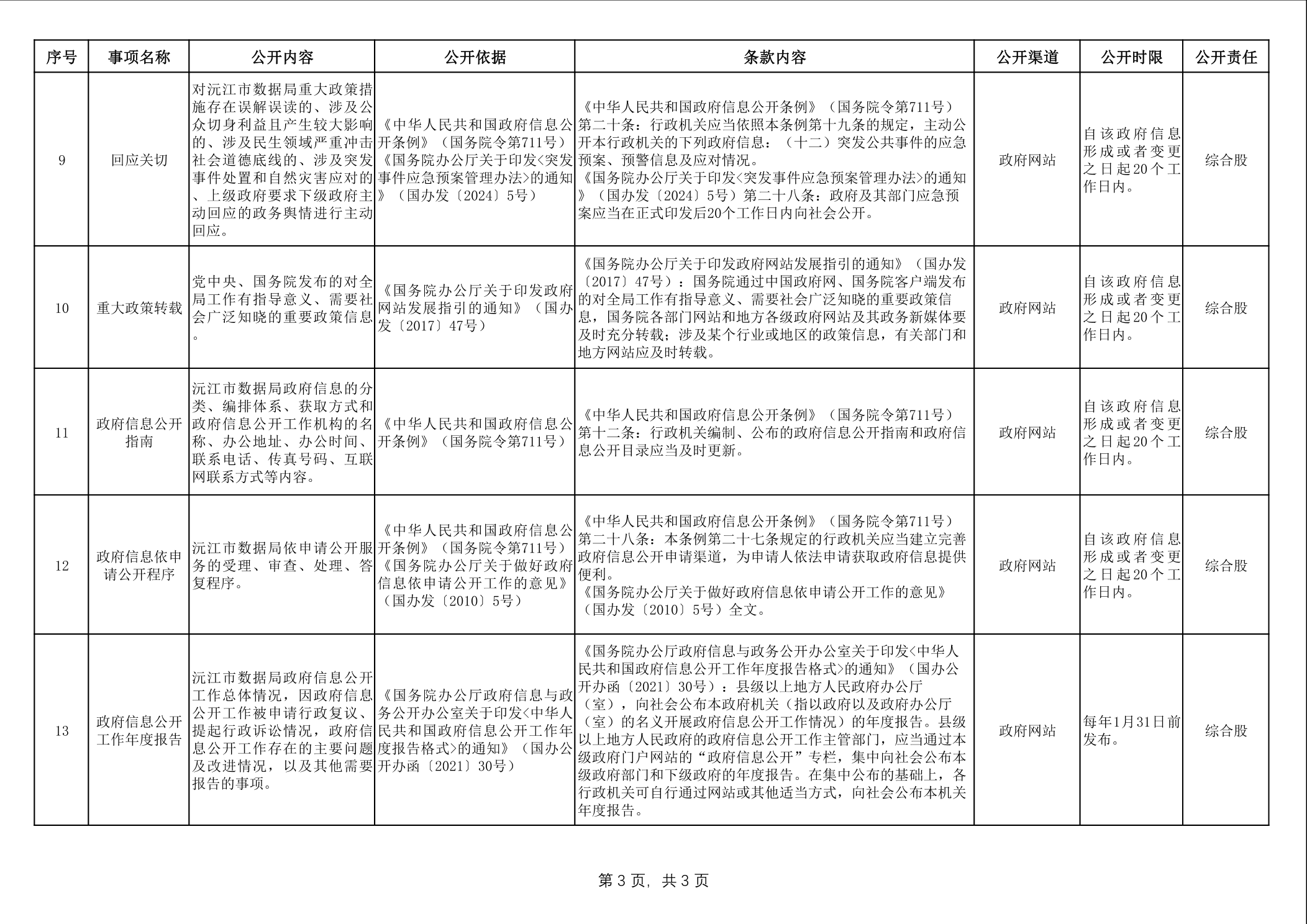 数据局政府信息主动公开事项目录