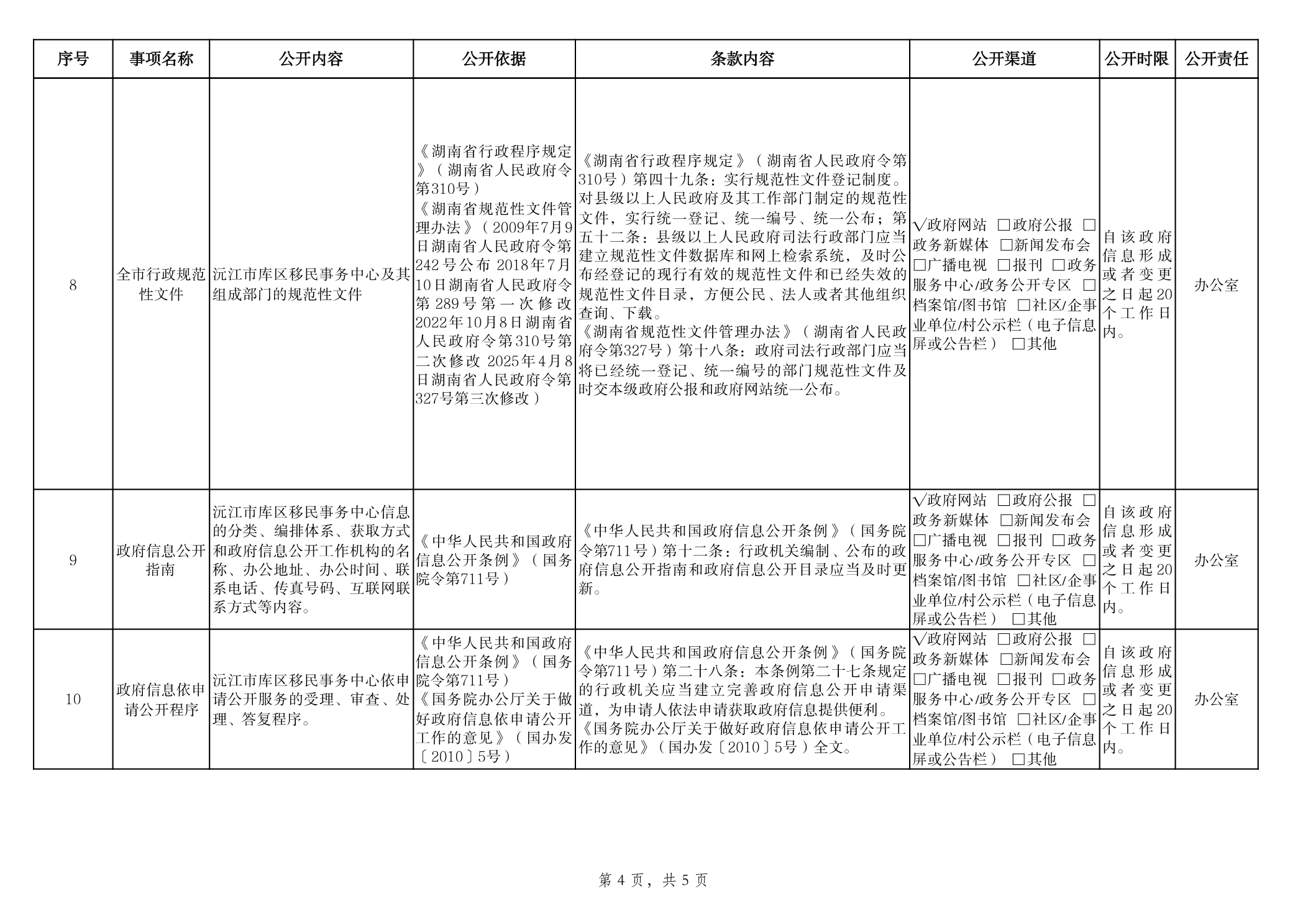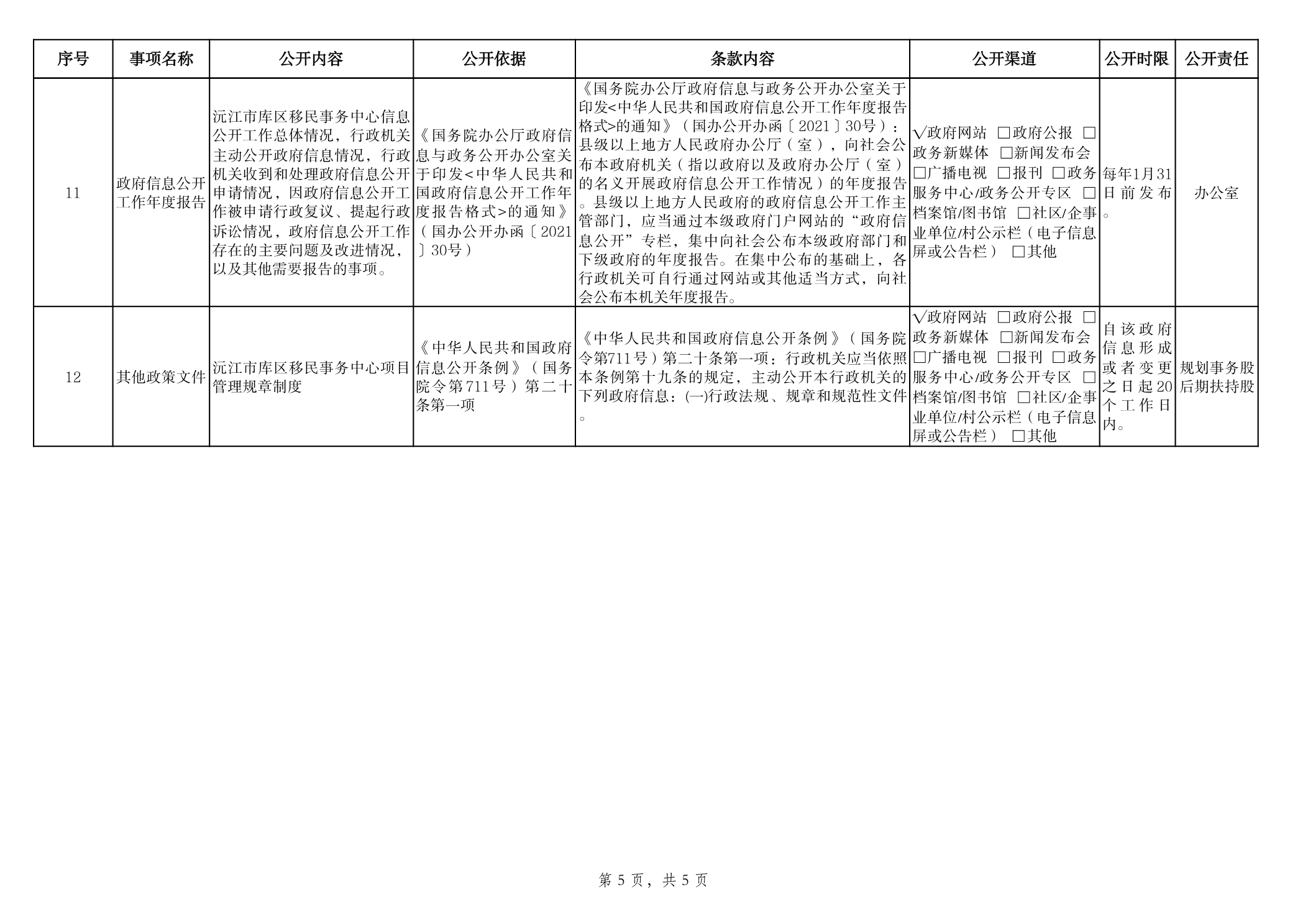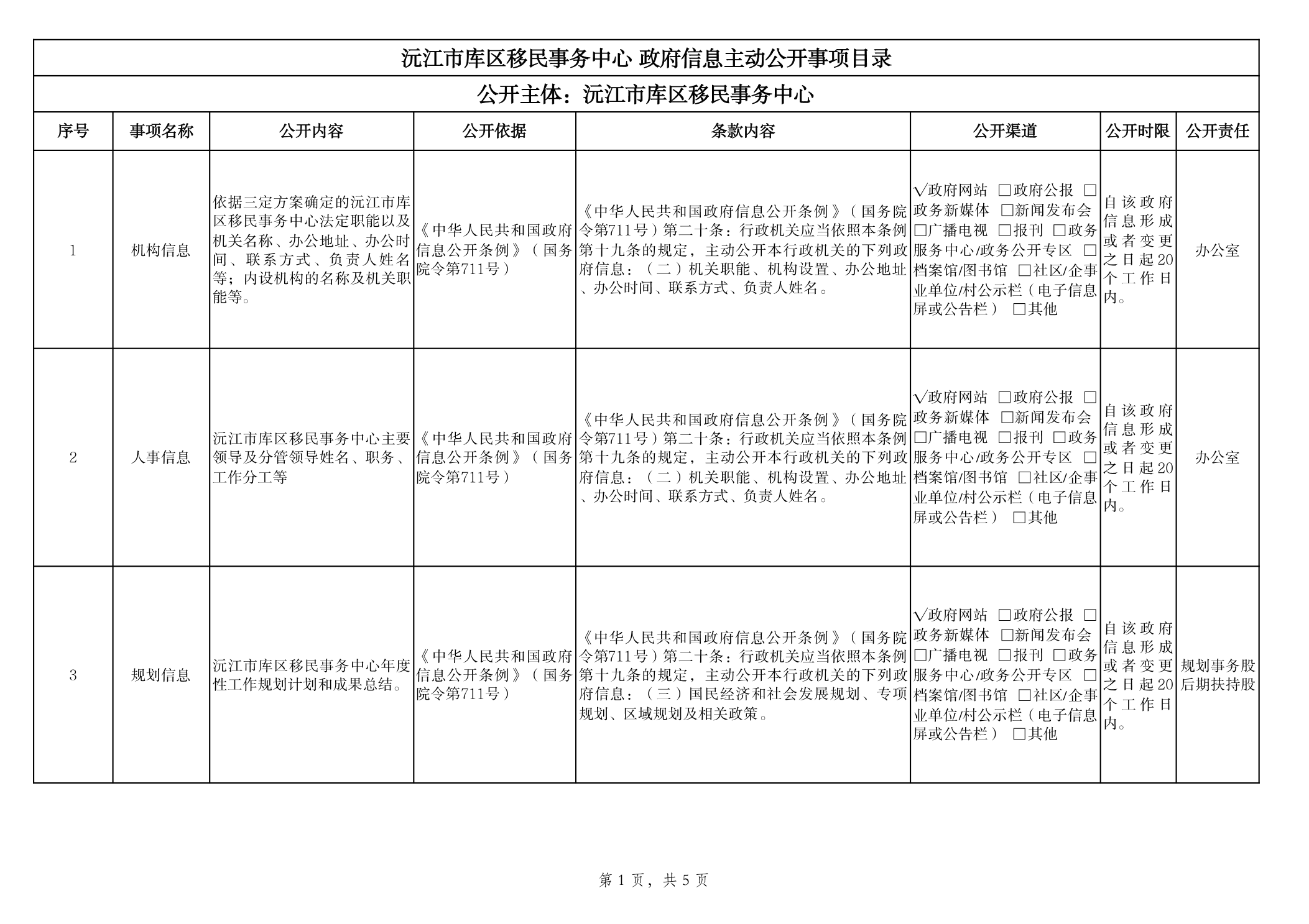 库区移民事务中心政府信息主动公开事项目录