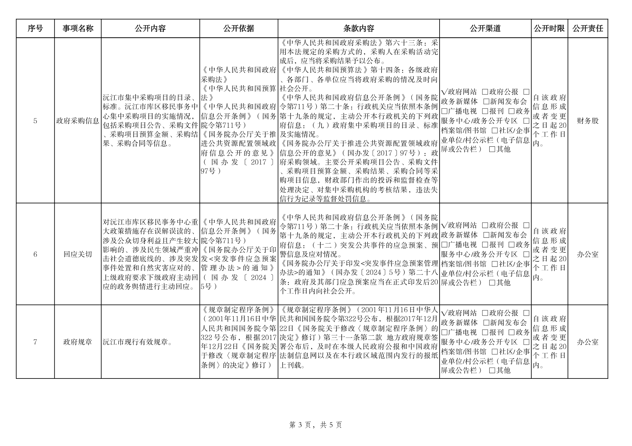 政府信息主动公开事项目录