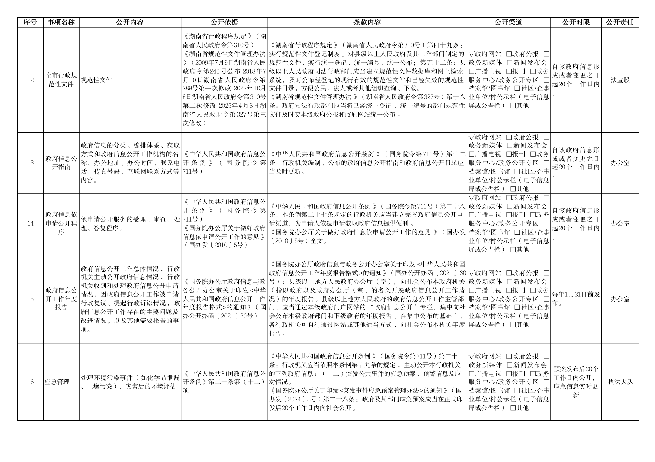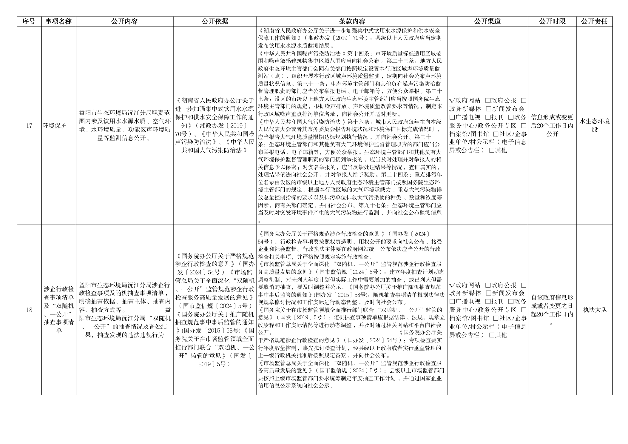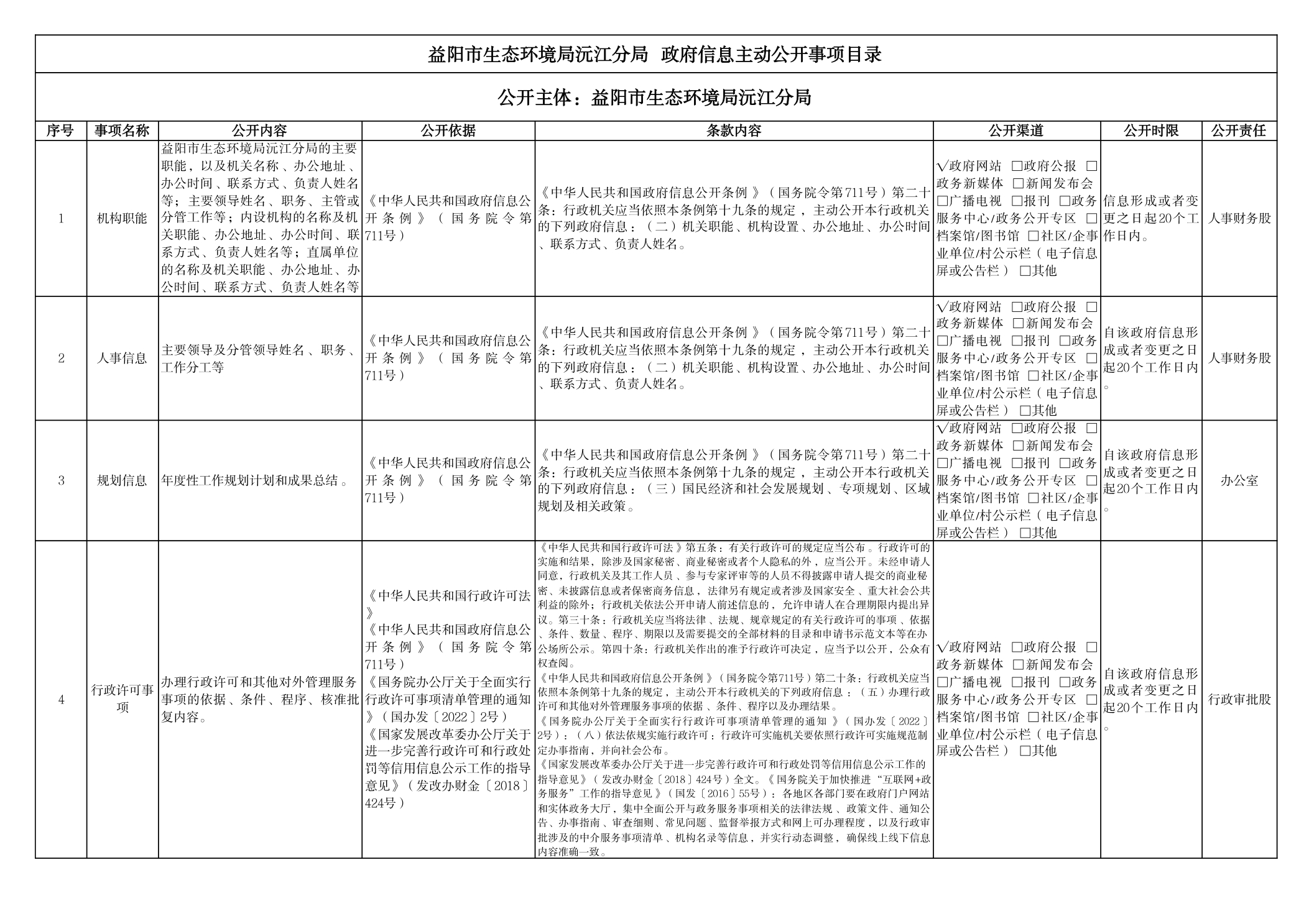 生态环境局沅江分局政府信息主动公开事项目录