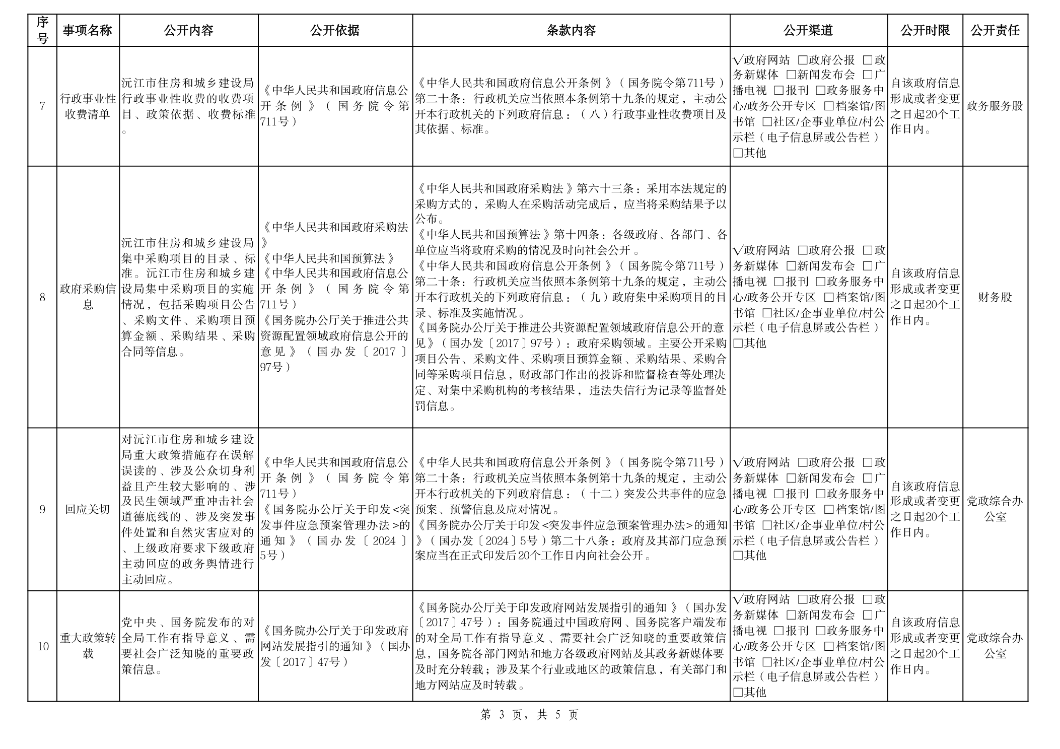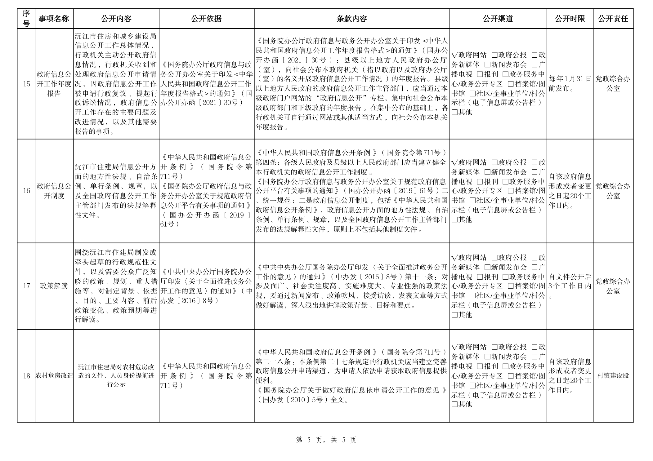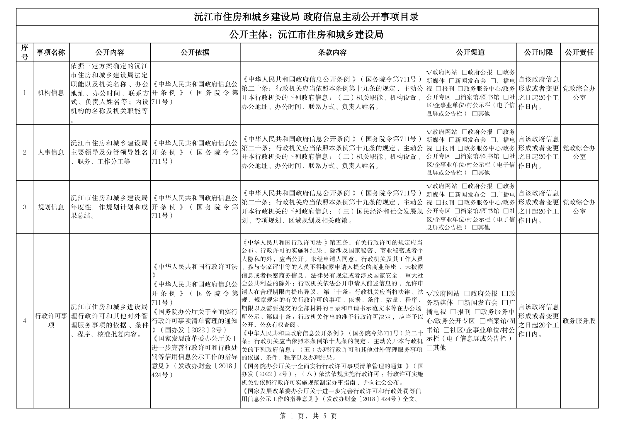 住建局政府信息主动公开事项目录