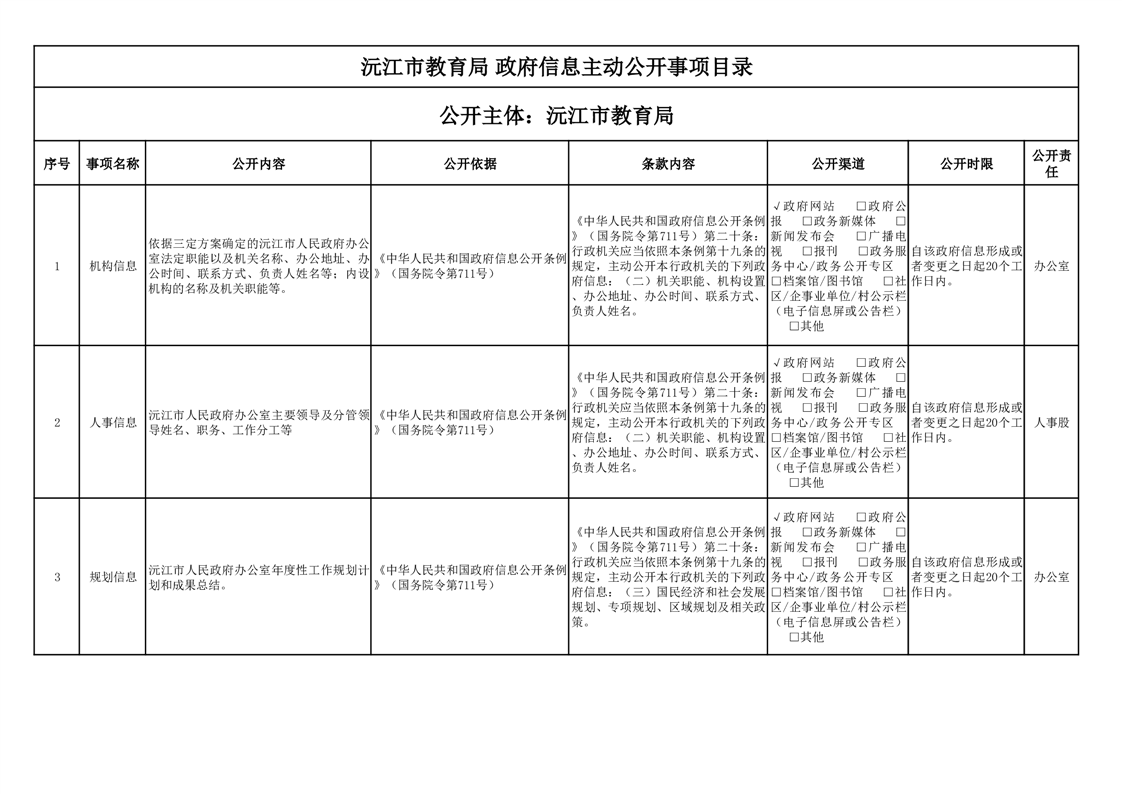 教育局政府信息主动公开事项目录