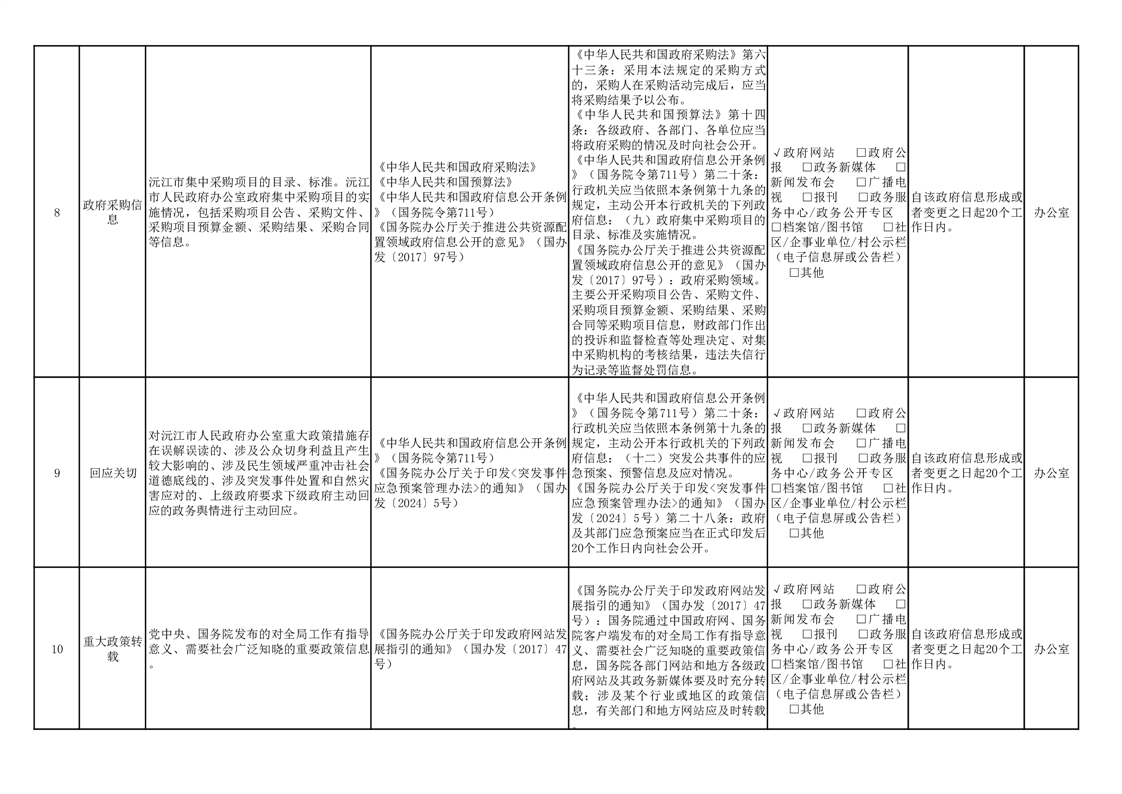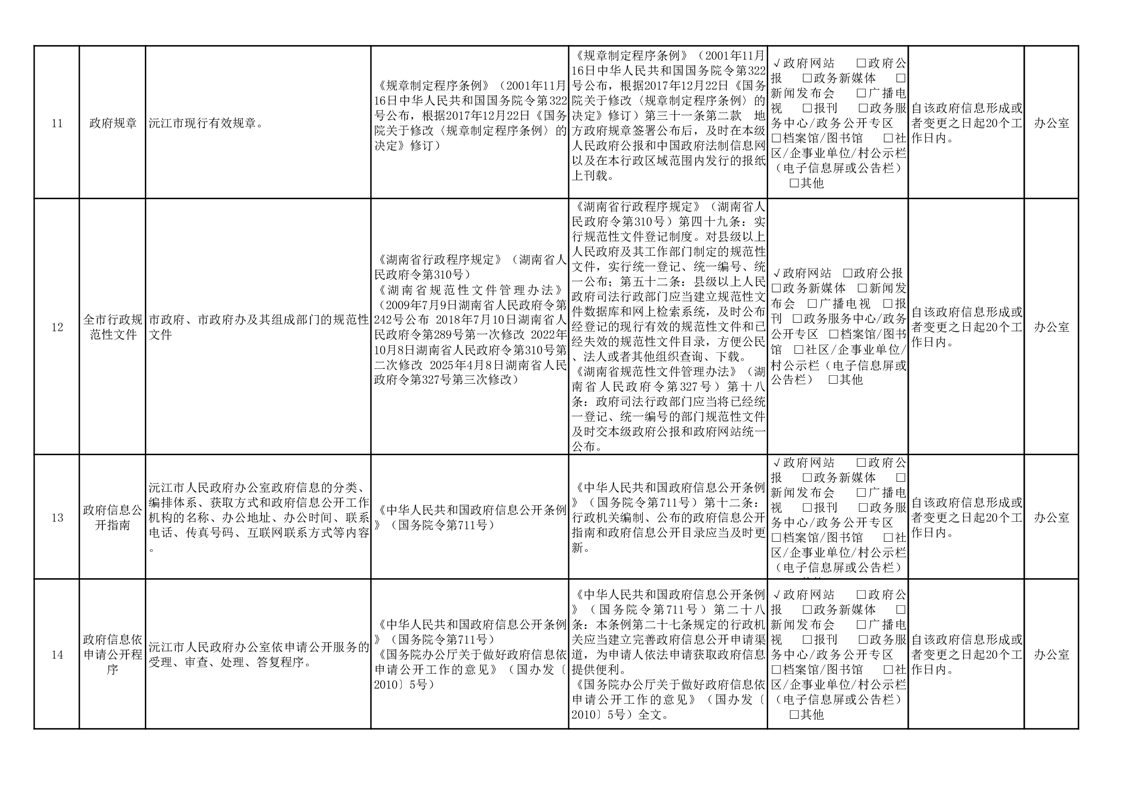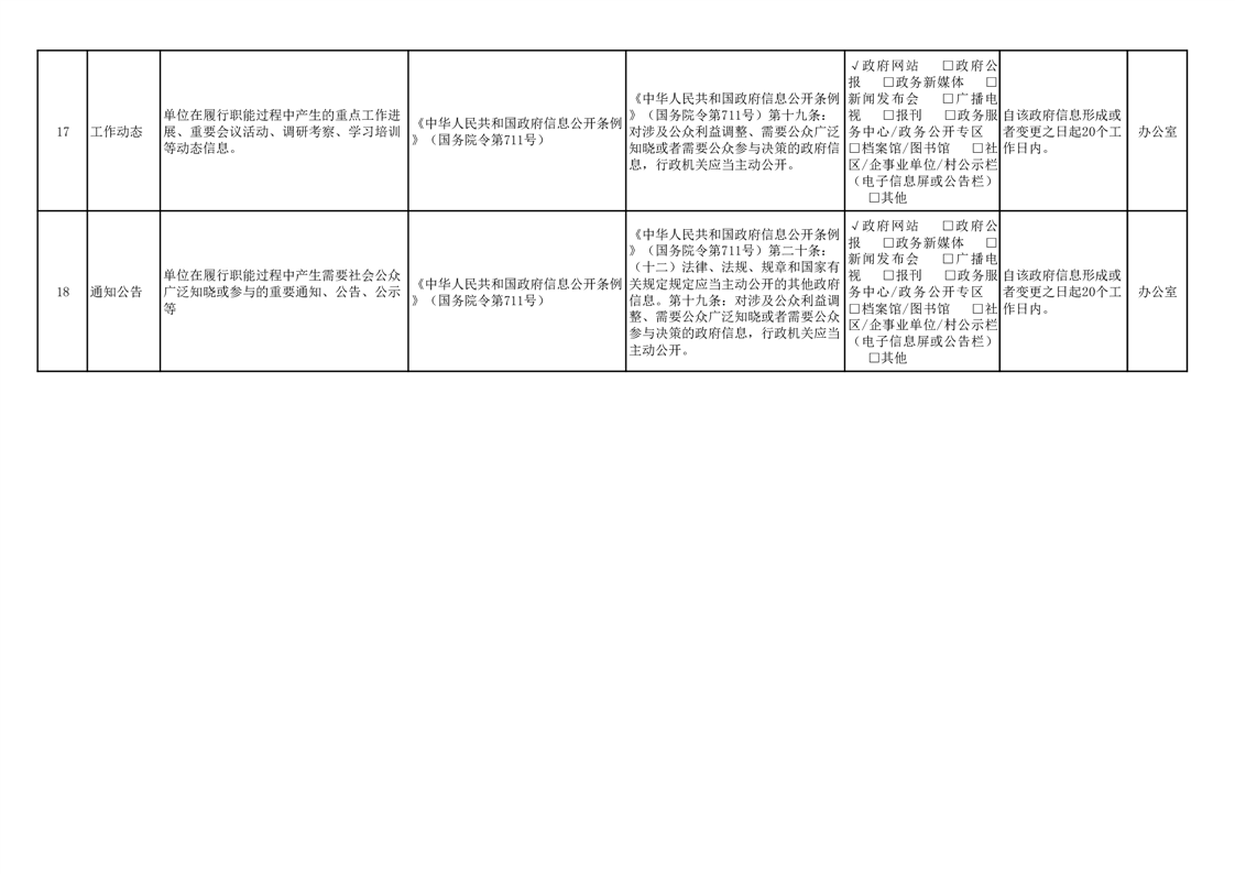 政府信息主动公开事项目录