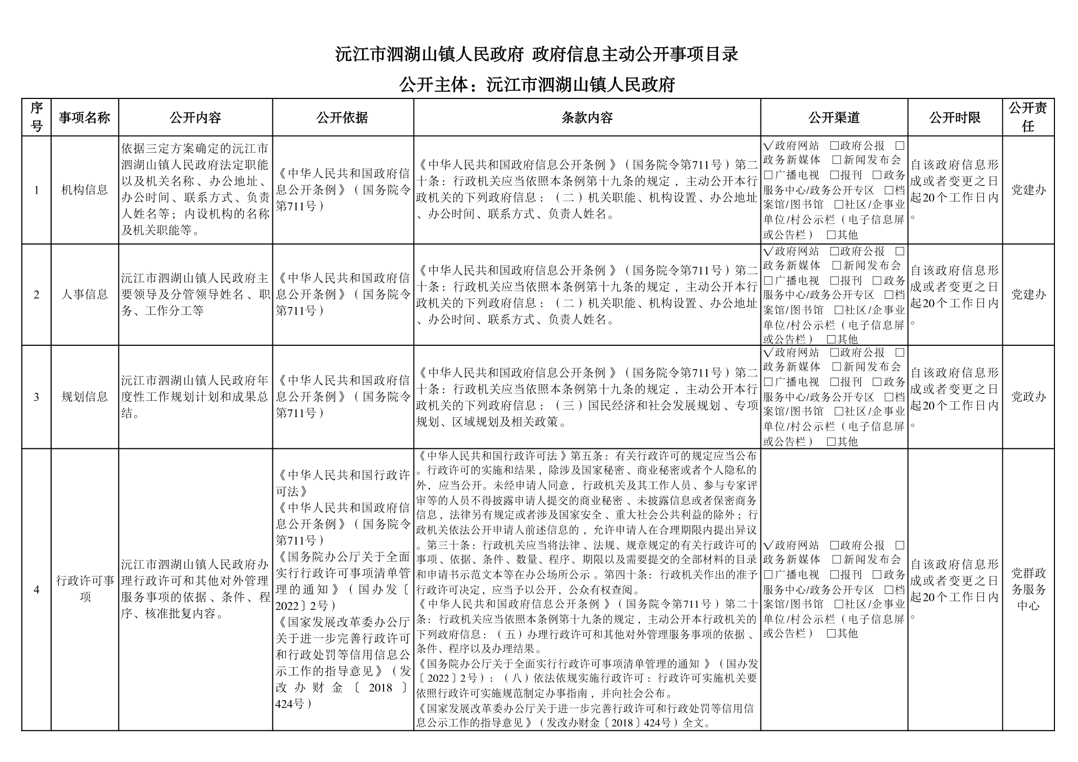 泗湖山镇人民政府政府信息主动公开事项目录