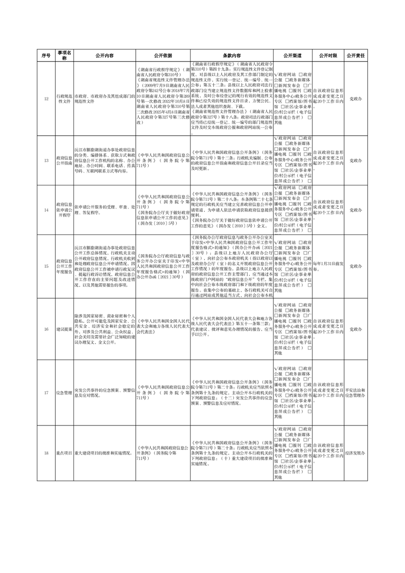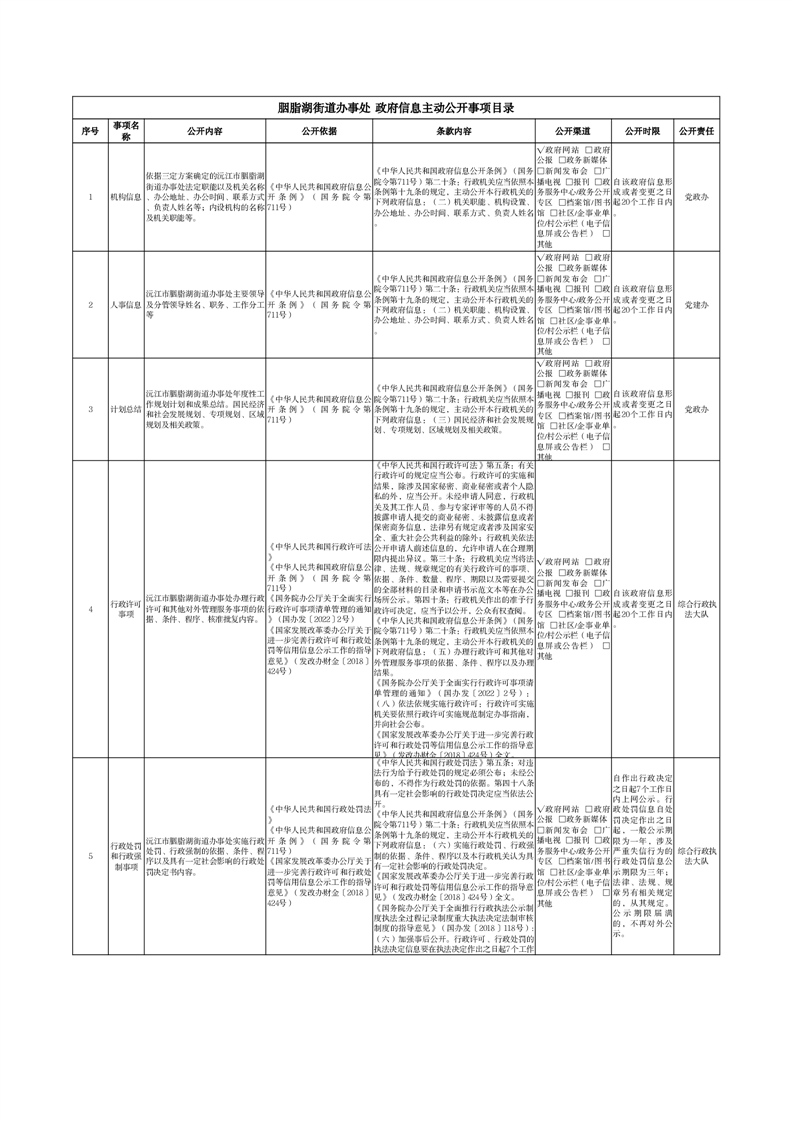 胭脂湖街道办事处政府信息主动公开事项目录