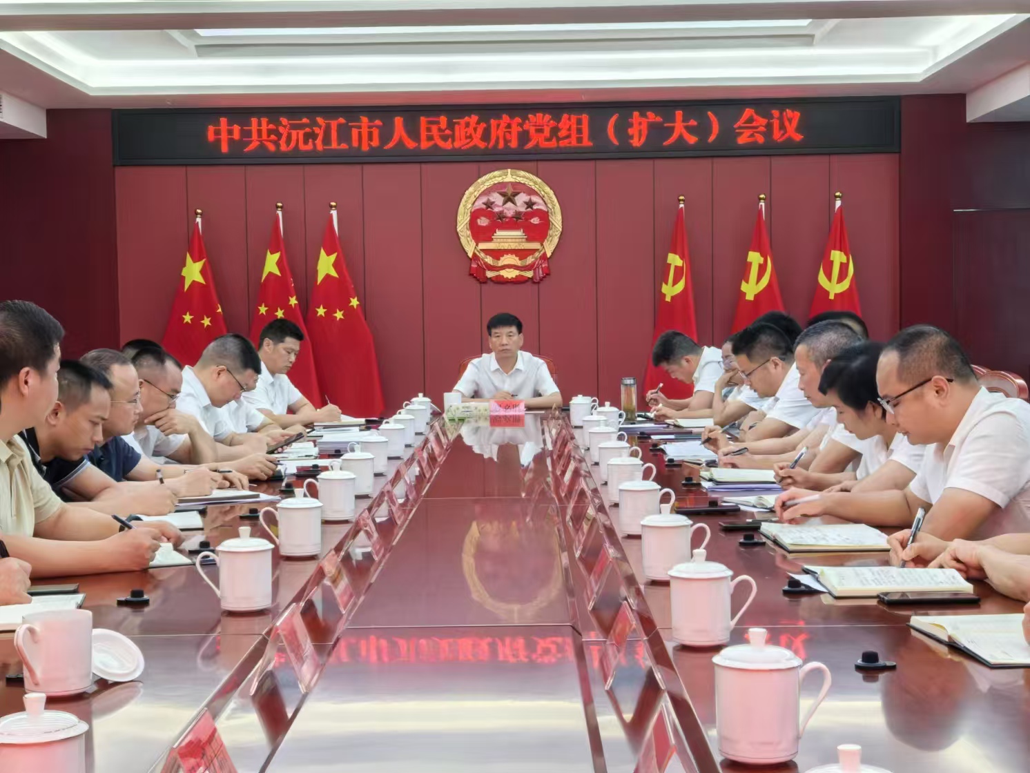 7月29日,沅江市委副书记、市长罗必胜主持召开市政府党组(扩大)会议,听取各线工作情况,部署现阶段重点工作。市领导夏鑫、吴限忠、钟清华、郭强、袁杰、雷亮、李选才参加。