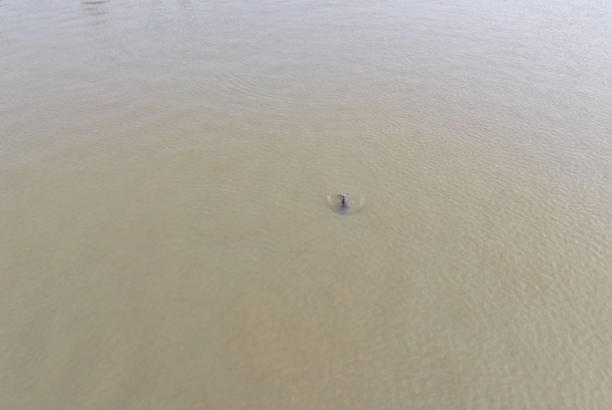 4月27日,沅江市渔政执法人员在万子湖水域执行日常巡护时,通过无人机监测发现异常:一只体长约1.3米的成年江豚尾鳍不仅缠绕着陈年绳网,还出现大面积感染性白斑,活动非常缓慢。接到报告后,湖南省农业农村厅迅速响应,由湖南省水产研究所、湖南省水生野生动物救护工作站(湖南海底世界)医疗团队和岳阳市江豚中心工作人员等组成15人救援队,携带专业器械连夜赶赴现场,特邀中国科学院水生生物研究所江豚研究专家现场指导救护。