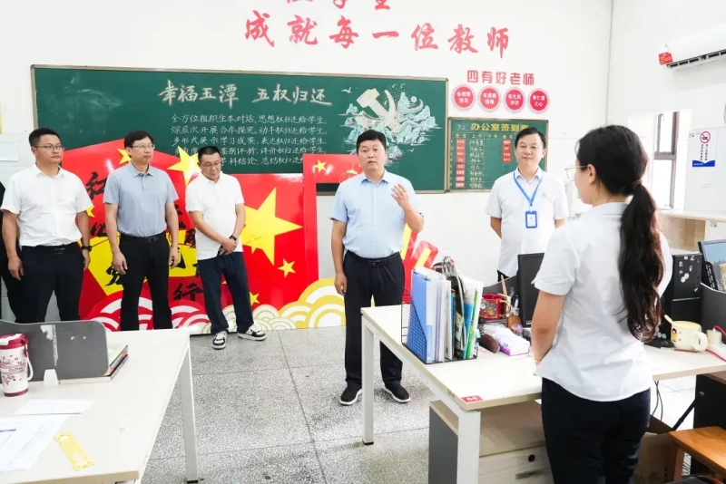 在玉潭学校,杨智勇走进教室、教师办公室,与师生亲切交流,了解学校的教育教学特色、课程设置以及师生的工作学习情况。他对学校的办学成果给予充分肯定,并希望学校继续发挥自身优势,创新教育教学模式,提升教育教学质量,打造优质教育品牌,为学生提供更加多元化、个性化的教育服务。