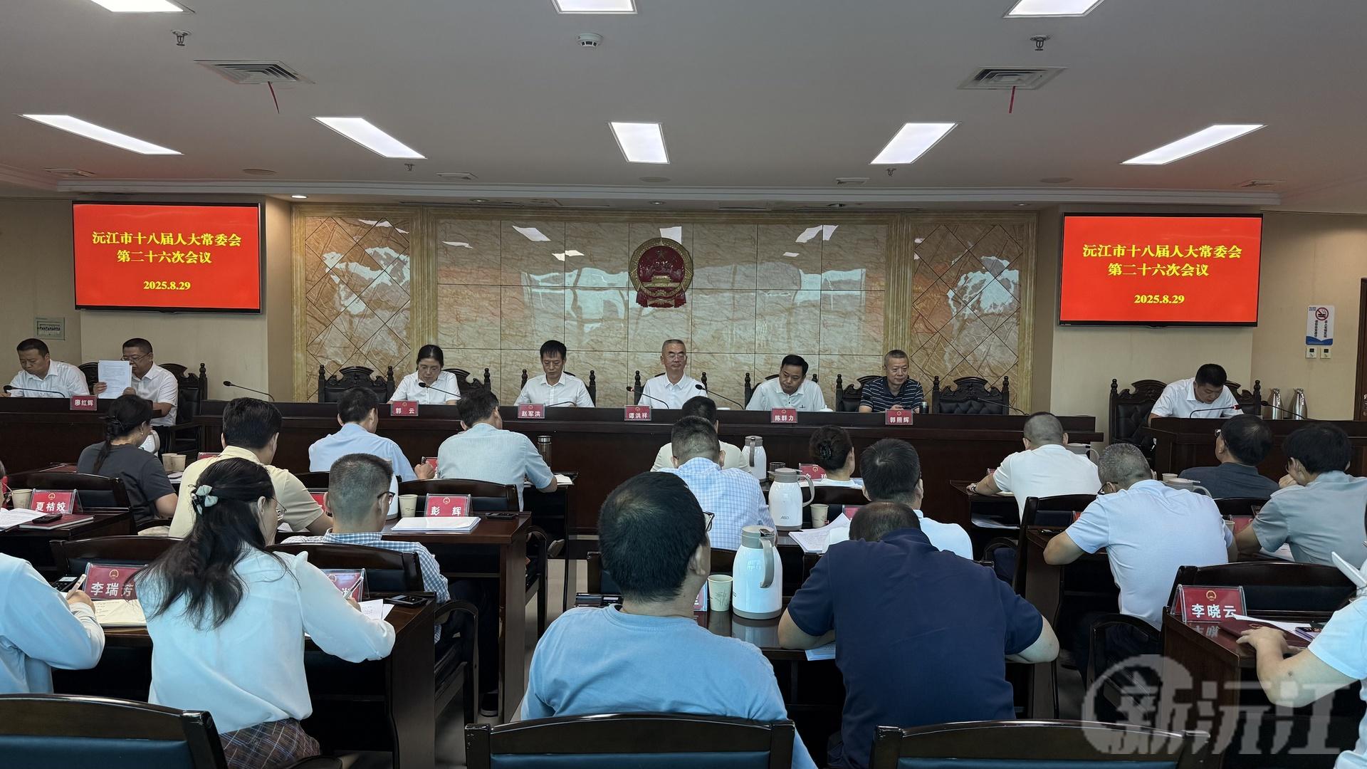 8月29日,沅江市十八届人大常委会第二十六次会议召开。市委常委、常务副市长夏鑫列席会议并作表态发言,市人大常委会副主任谭洪祥主持会议,市人大常委会副主任陈群力、赵军洪、郭照晖、郭云出席会议。