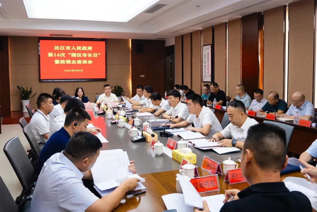 9月8日,沅江市委副书记、市长罗必胜组织开展市人民政府第十四次“园区市长日”活动并召开政银企座谈会。市委常委、常务副市长夏鑫主持,副市长谢贵、田野,高新区管委会主任梁成伟出席。