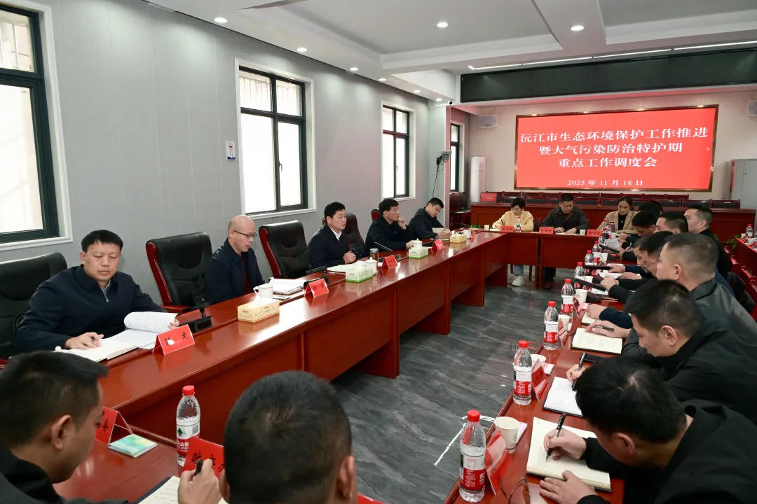 11月18日,沅江市委书记杨智勇主持召开生态环境保护工作推进暨大气污染防治特护期重点工作调度会,分析当前环保形势,动员全市进一步统一思想、压实责任、强化举措,坚决打赢污染防治攻坚战。市委副书记、市长罗必胜,市领导周军、吴限忠及高新区党工委书记彭龙出席会议。