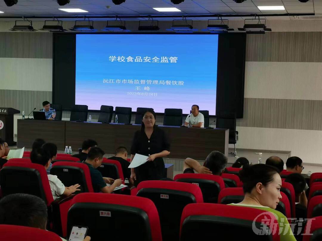 8月24日,沅江市芙蓉学校一楼大会议室里,不断传出阵阵掌声,由沅江市市场监督管理局和市教育局联合组织开展的全市学校及托幼机构食品安全暨落实“两个责任”培训会正在进行,全市210多所学校及托幼机构分管食品安全的副校长和后勤保障专员参加会议。