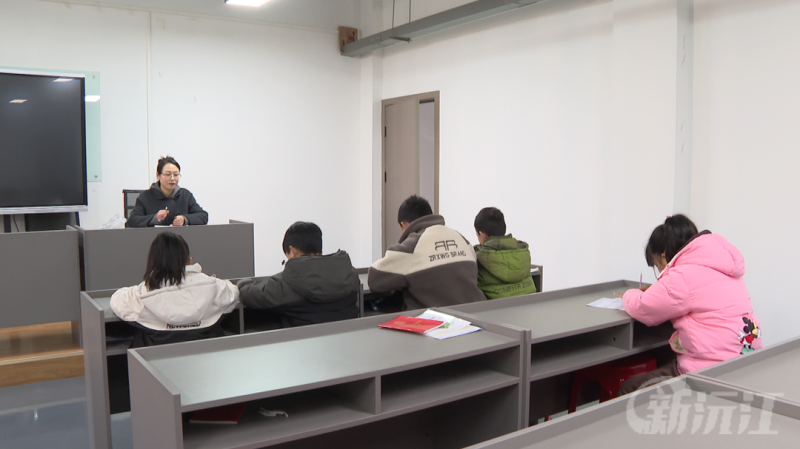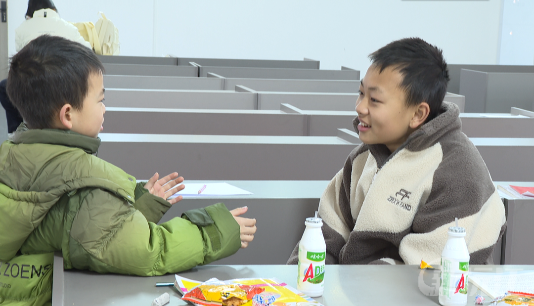 来到金莫特电子有限公司的休息室内,5名职工子女正在一起完成各自的寒假作业,公司专门安排了一名临时“妈妈”负责陪伴小朋友,并辅导他们学习。完成作业后,这位临时“妈妈”又开始分发零食,还带着他们下楼去玩游戏,既充实又快乐。