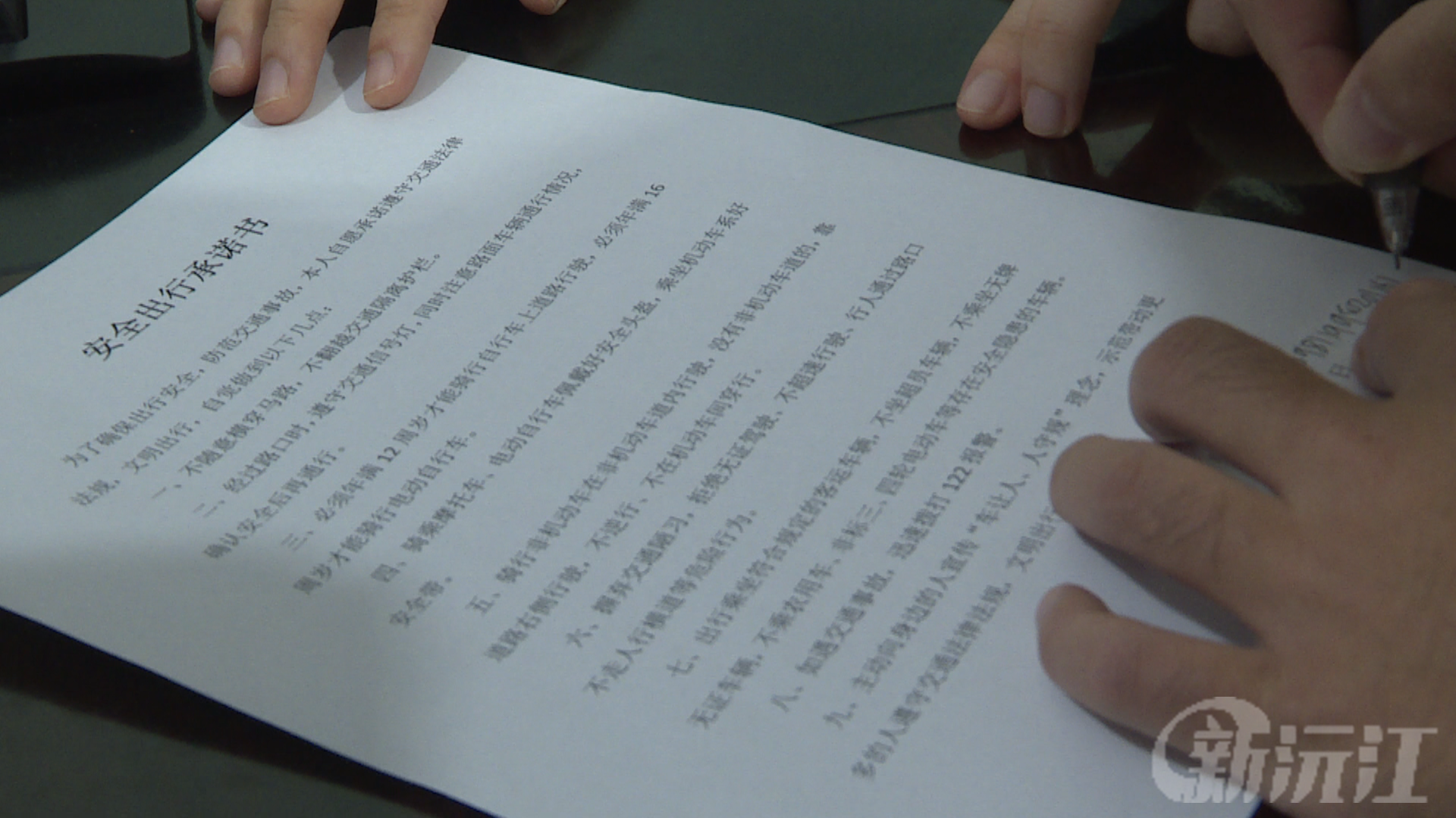 在沅江市交管大队的法宣中队办公室内,市民郑先生正因未按规定佩戴头盔而接受处罚与教育。此前,他已收到相关处罚信息,此次来到法宣中队,不仅要接受交警的宣传教育,还需签订《安全出行承诺书》。现场,交警神情严肃地对郑先生进行提醒:“这是你第二次没带头盔了,现在要签一个安全出行承诺书。如果第三次还没带头盔,你会再次接到信息,届时需到我们交管大队五楼现场辨认你的违法照片,之后我们会给你开具处罚决定书的单子。”