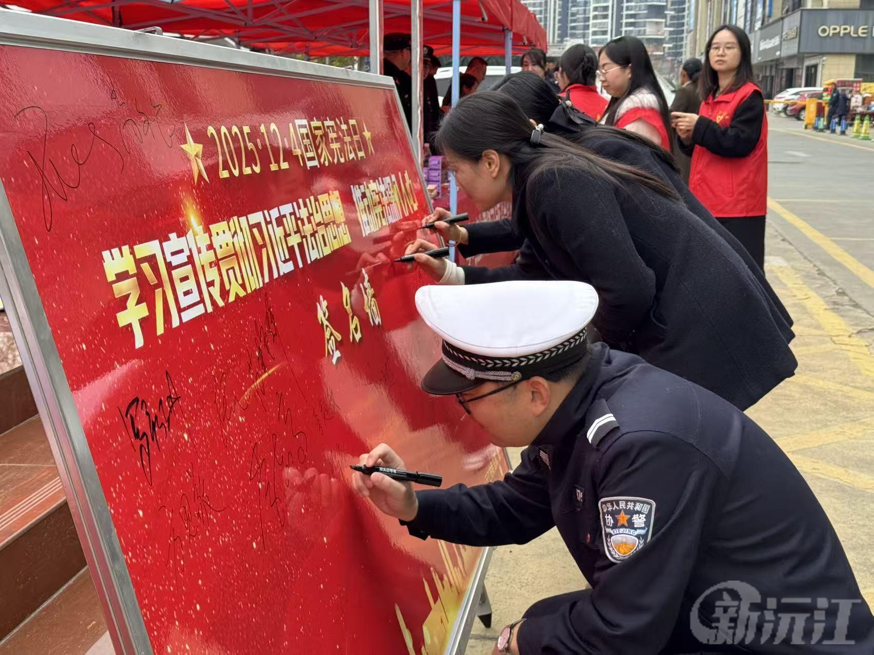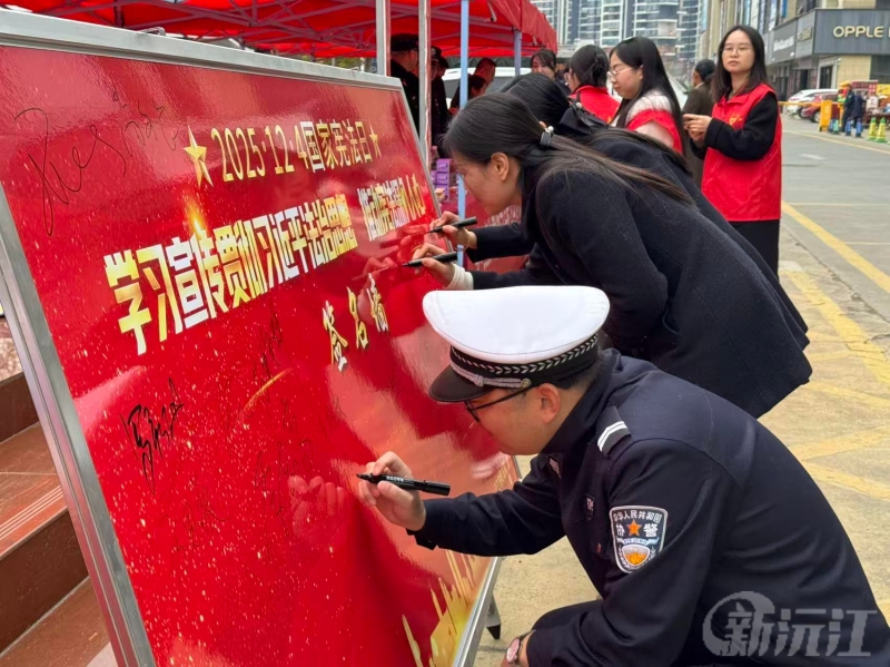 各分会场活动精准对接不同群体需求,以“场景化+广覆盖”模式推动宪法宣传直达基层、深入人心。全市各乡镇(街道)利用气象电子显示屏持续播放宪法宣传海报和标语,在主要路段悬挂横幅、更新宣传栏,形成集中宣传声势。联动全市出租车打造的“流动普法车队”,穿梭于城区大街小巷,车载显示屏滚动播放宪法宣传标语,让法治之音随车流动,实现“出门见法、抬头学法”。