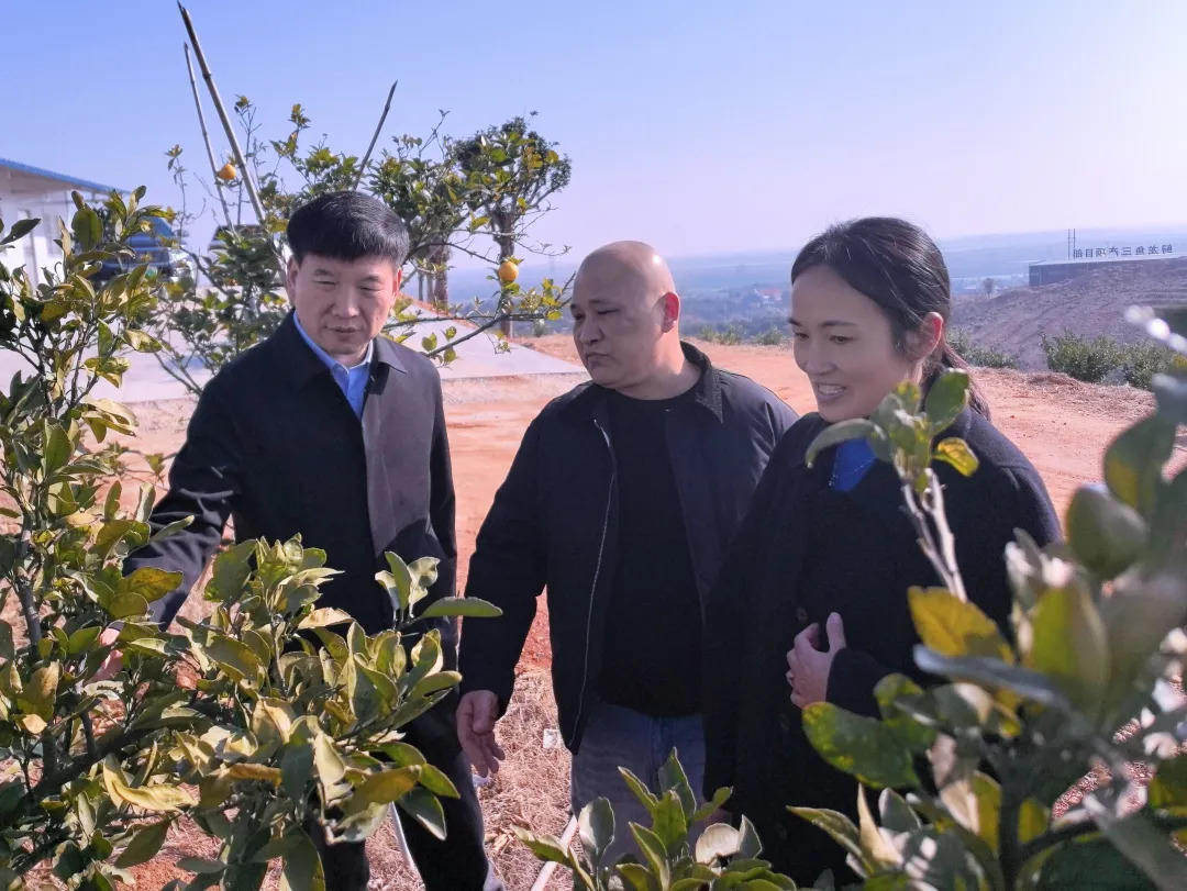 在新湾镇新湾村、南嘴镇南嘴村,罗必胜实地走访调研,与镇村负责人深入交流,详细询问柑橘品种改良、产量规模、销路拓展及市场效益等情况,精准研判柑橘产业的发展现状与未来方向。