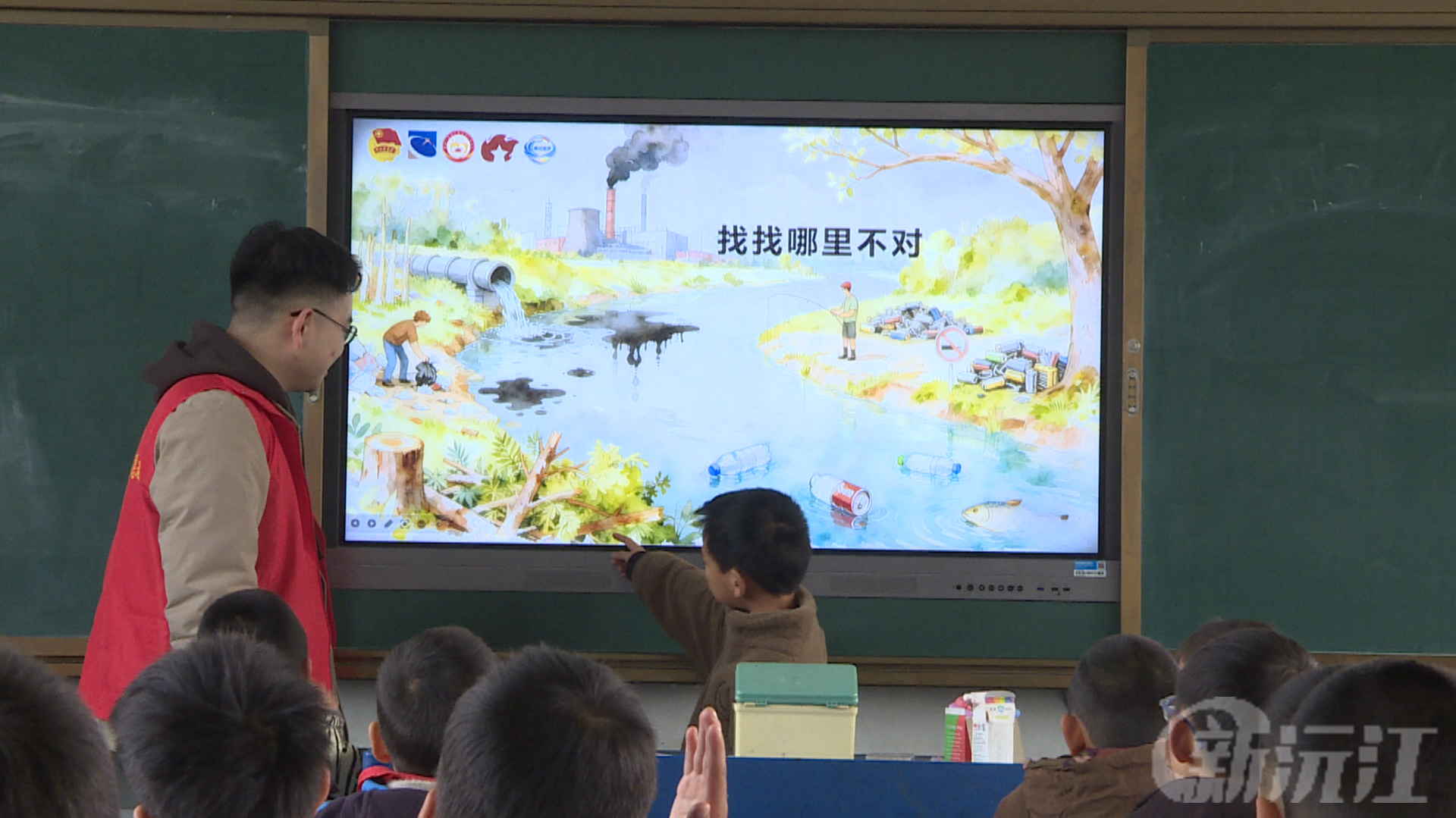 与此同时,男生课堂也精彩纷呈。志愿者们带来的生态课生动有趣,仿佛为孩子们打开了一扇通往绿色世界的大门。课堂上,孩子们积极参与互动,踊跃地从黑板上找出污染环境的行为,在思考与讨论中,进一步认识到保护环境的重要意义。