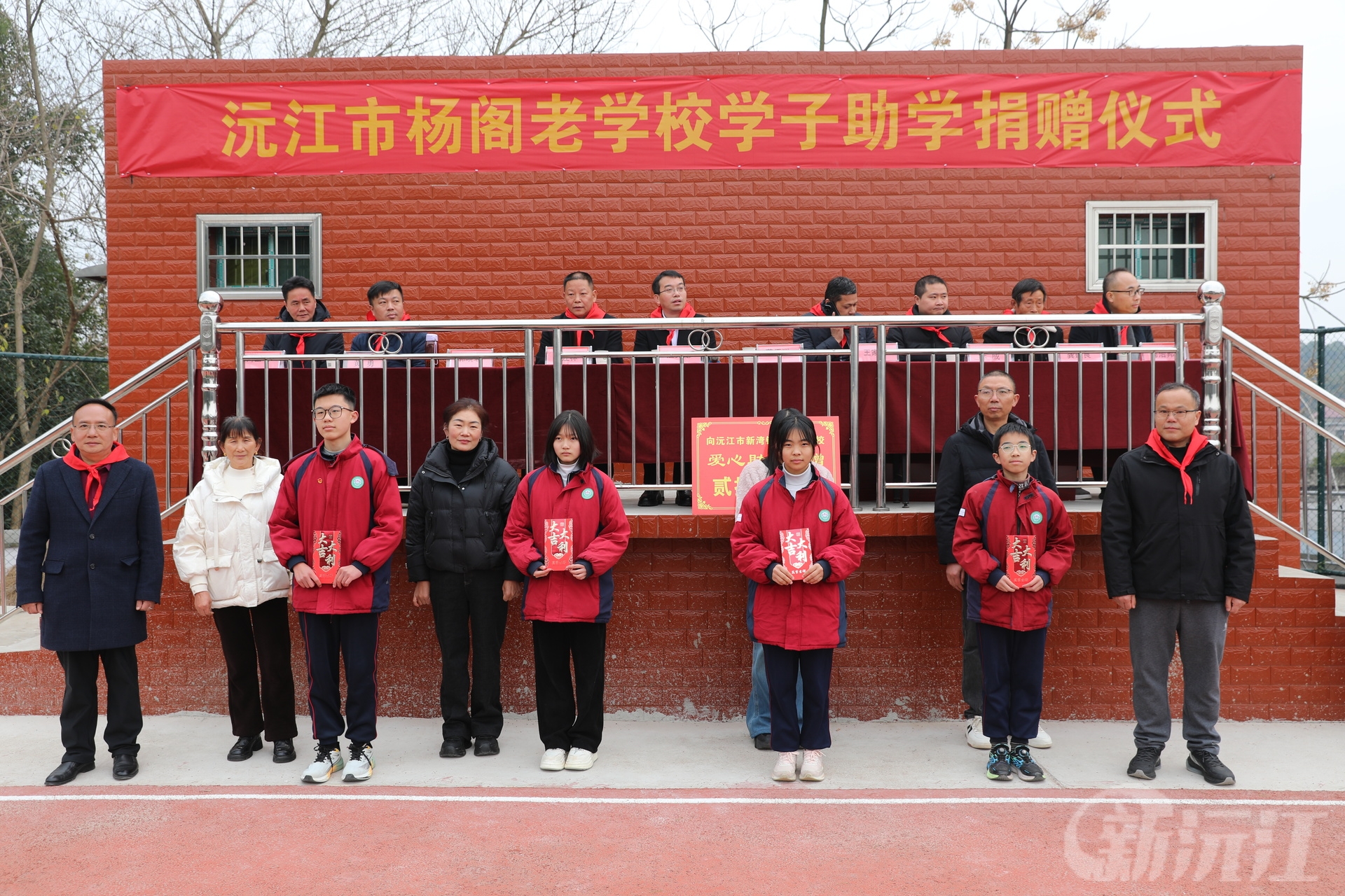 1月12日,沅江市杨阁老学校校园内彩旗飘扬、暖意融融,一场充满温情的学子助学捐赠仪式在此隆重举行。20万元爱心助学金的注入,将为该校优秀学子和困难学子的求学之路保驾护航。市政协副主席汪交龙出席仪式,并为爱心企业家代表颁发“功在千秋”牌匾,致敬其捐资助学的善举。