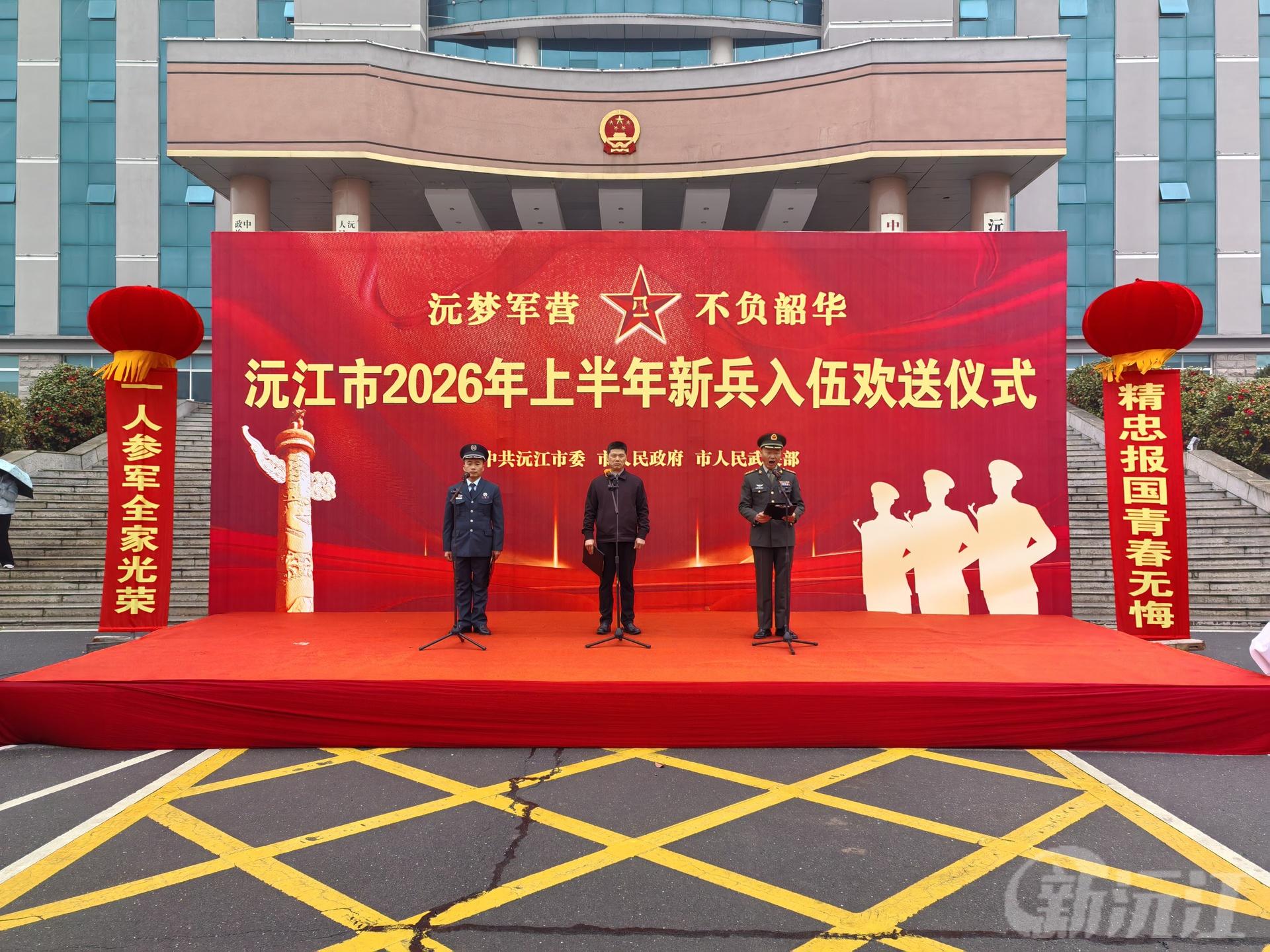 3月15日,沅江市隆重举行“沅梦军营 不负韶华”2026年上半年新兵入伍欢送仪式,为72名身着戎装、胸佩红花的新兵壮行。他们庄严宣誓、整装待发,即将奔赴军营,履行强军兴军的神圣使命。市委常委、副市长吴限忠致辞,市委常委、市人武部部长贺海知主持仪式,市人武部处级副职副部长胡军出席仪式。