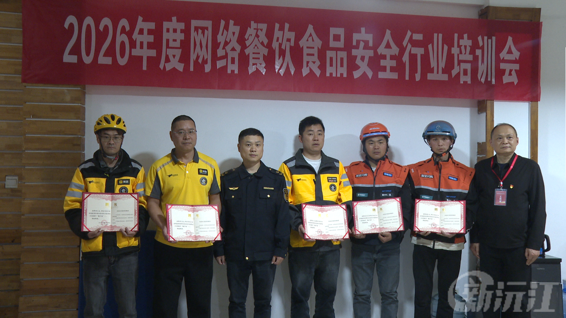 在美团外卖沅江代理点,沅江市市场监督管理局工作人员向5名党员外卖骑手现场颁发食品安全监督员聘书,这支流动的“食品安全前哨”队伍正式上岗履职。