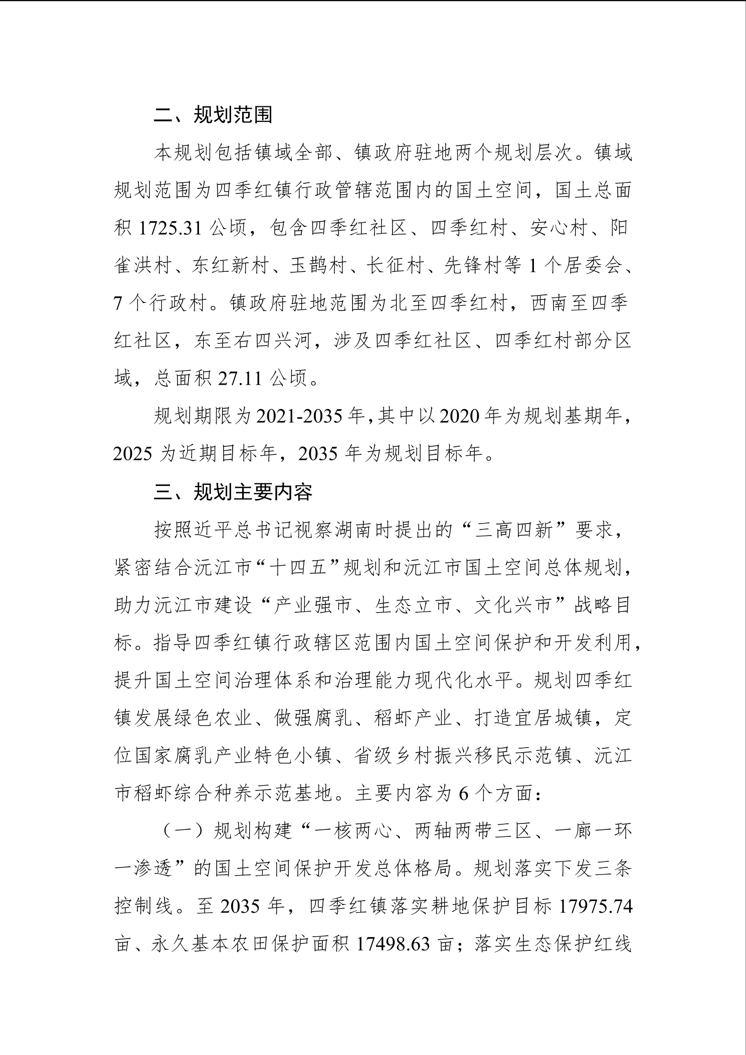 沅江市四季红镇国土空间规划(2021-2035年)公示