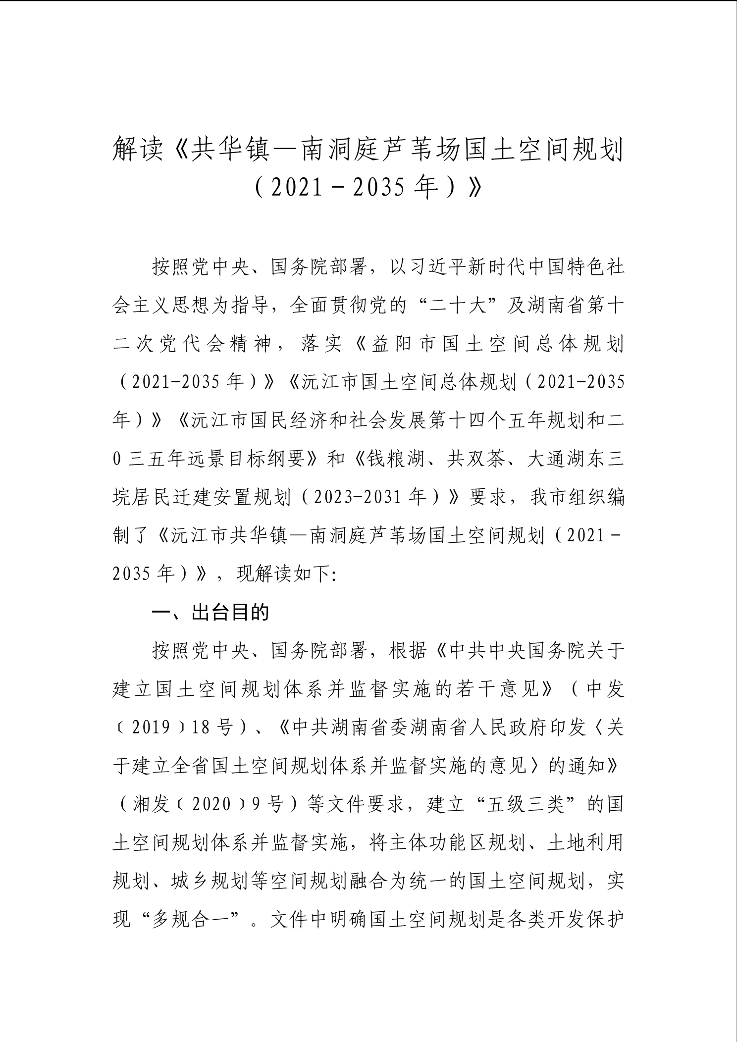 沅江市共华镇-南洞庭芦苇场国土空间规划(2021-2035年)公示