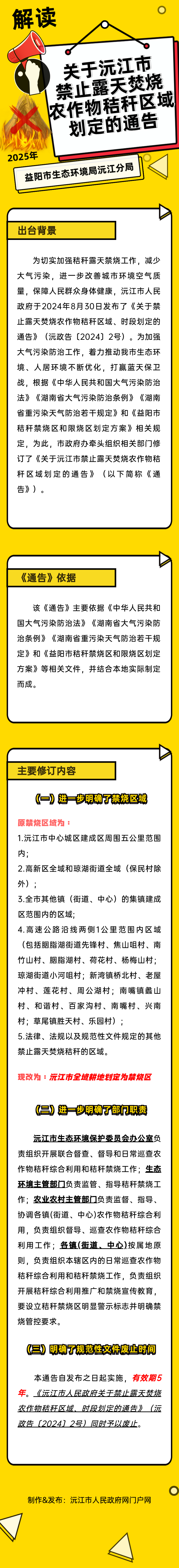 【图文】益阳市生态环境局沅江分局《关于沅江市禁止露天焚烧农作物秸秆区域划定的通告》的解读