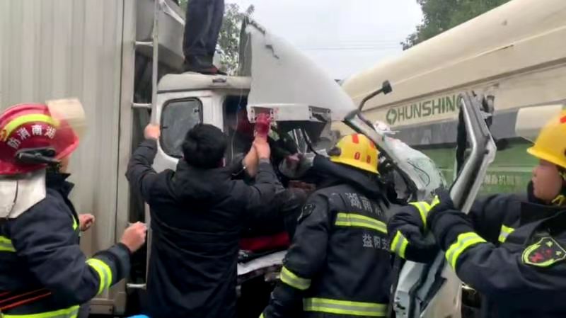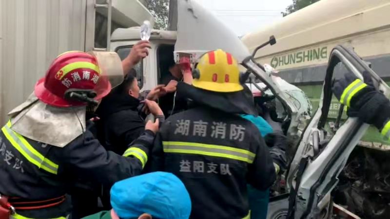 11月23日,16时30分许,沅江消防救援大队琼湖消防救援站接到群众报警,新湾镇毛田加油站附近发生车祸,导致2名驾驶员被困驾驶室,情况危急,请求消防队救援。接警后,沅江消防救援大队琼湖消防救援站立即出动2台抢险救援消防车14名消防员紧急前往处置。