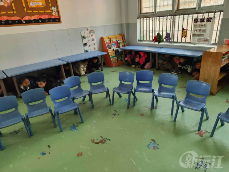 听到警报声后,正在户外活动的老师迅速组织幼儿有序撤离,一边安抚幼儿情绪,一边带领他们进入室内。老师们关闭门窗,用桌椅等重物挡住门,并引导幼儿躲到教室的角落,同时清点幼儿人数,维持现场秩序,确保每一个孩子的安全。安保人员和行政管理人员紧密配合,凭借机智与勇气,最终成功制服“歹徒”,化解危机。