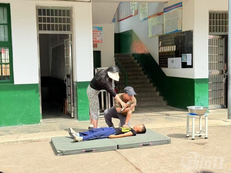 演练现场,随着一声急促的呼救声,一名扮演“溺水者”的学生躺倒在地,防溺水安全演练正式开始。学校安全负责人迅速赶到“事故”现场,在查看“溺水者”状态的同时,向围观学生大声强调:“发现有人溺水,千万不能盲目下水施救,一定要先确保自身安全!”