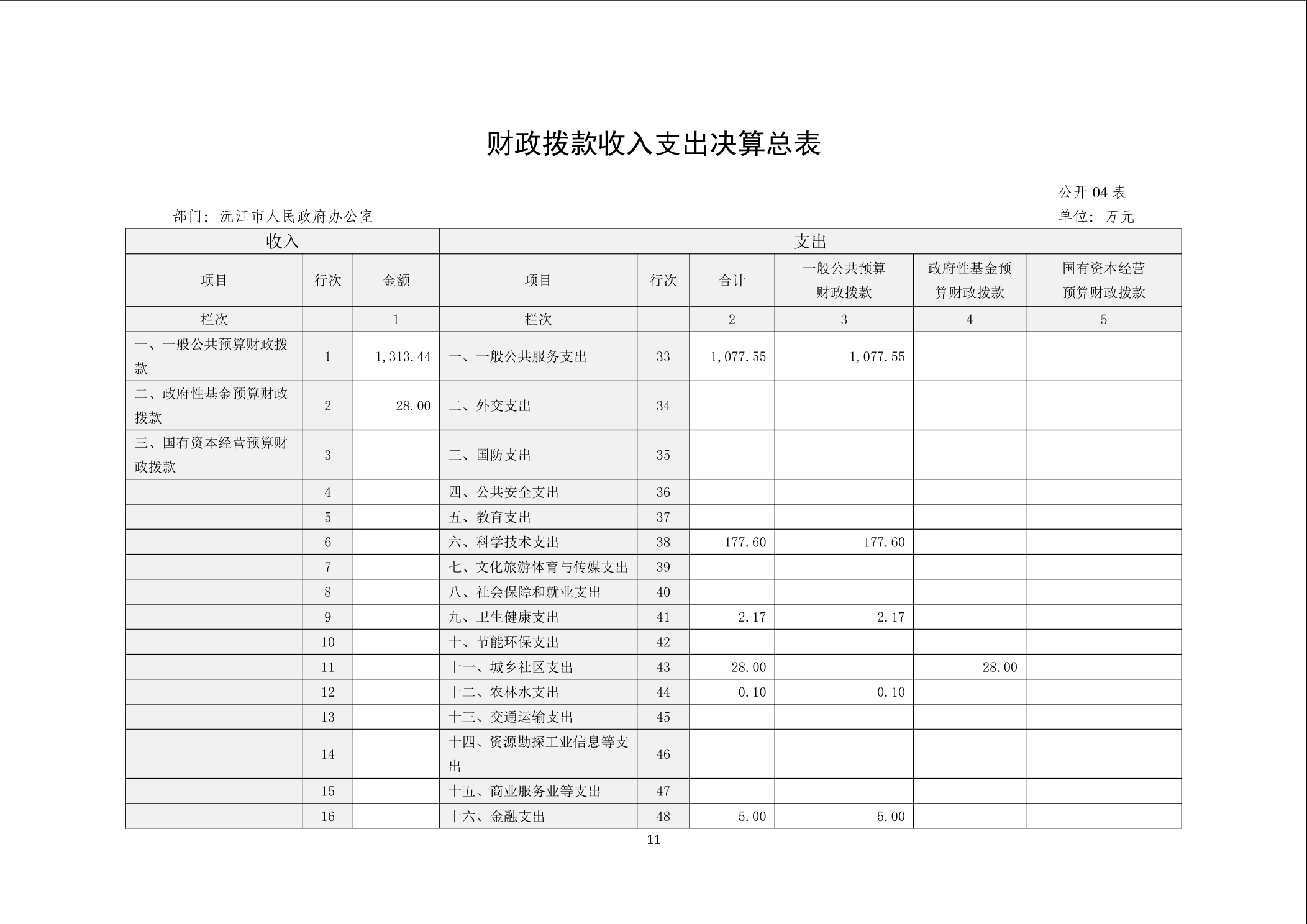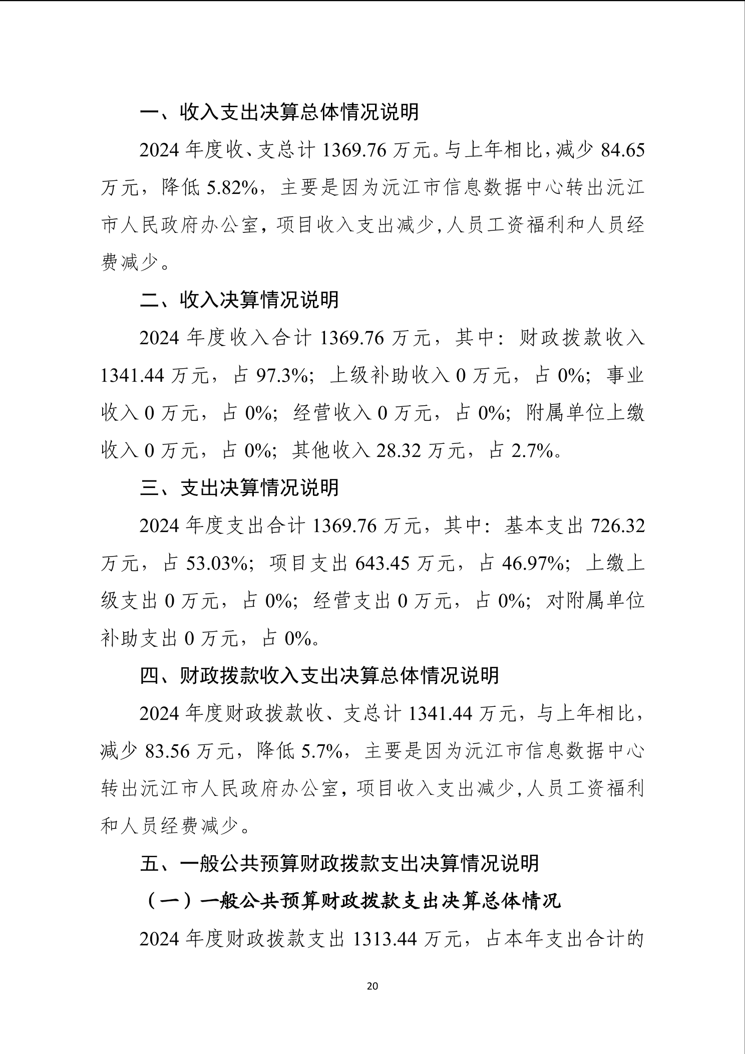 2024年度沅江市人民政府办公室部门决算公开