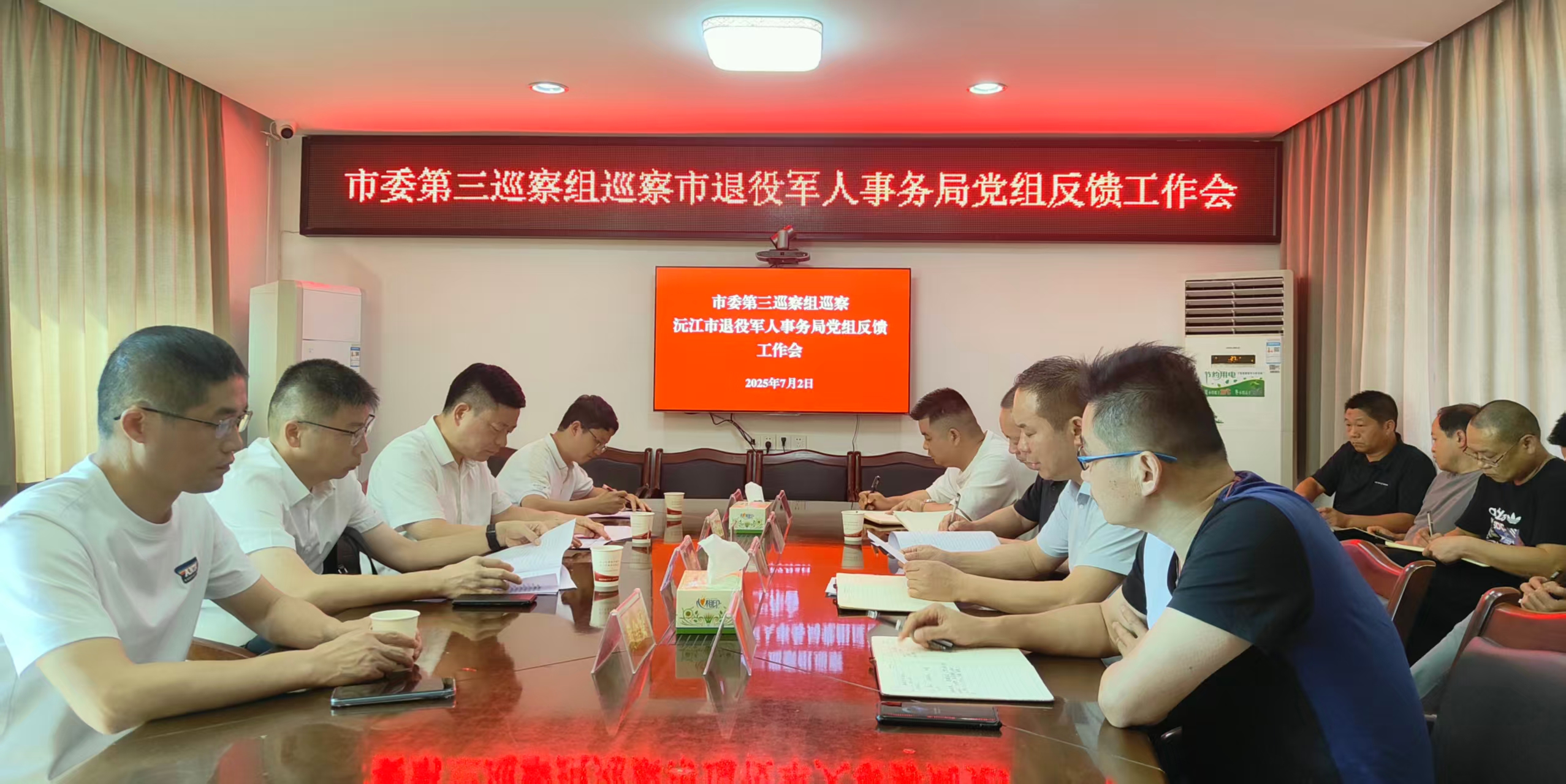 7月2日下午,市委第三巡察组巡察沅江市退役军人事务局党组工作的反馈会议在退役军人事务局会议室召开。会上,市委第三巡察组组长周朝辉反馈了巡察情况,市委巡察办主任彭辉传达了市委杨智勇书记在听取本轮巡察综合情况汇报时的重要讲话和市委书记专题会议的要求,并就落实好巡察整改工作提出工作要求。