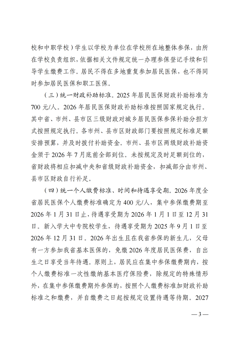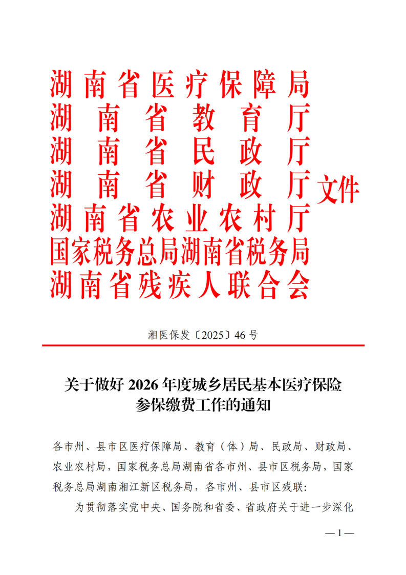 《湖南省关于做好2026年度城乡居民基本医疗保险参保缴费工作的通知》