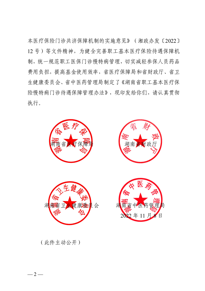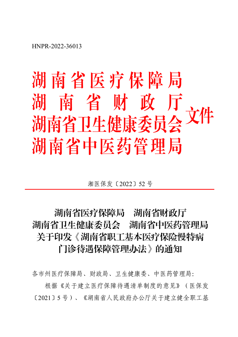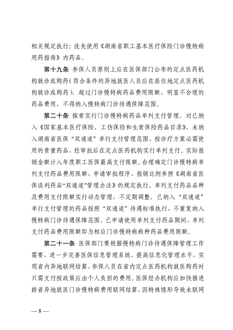 《湖南省职工基本医疗保险慢特病门诊待遇保障管理办法》