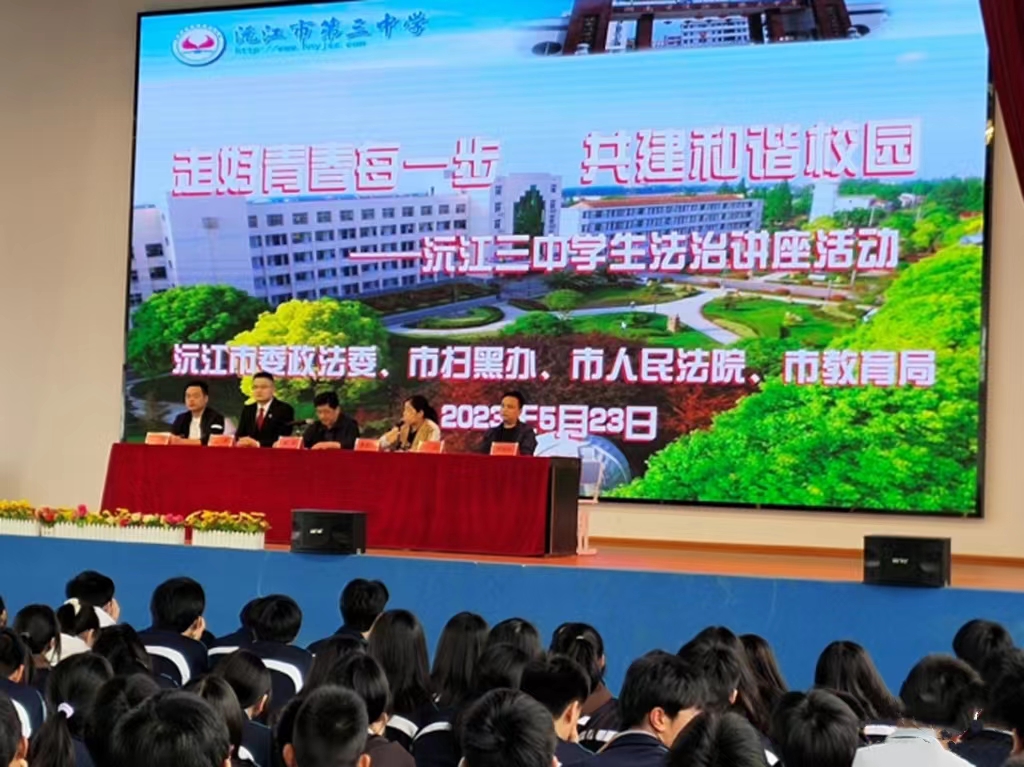活动中,由沅江市教育局、市红十字会、市人民医院组成的应急救护宣教组,市教育局、市民政局、市慈善总会组成的青春期教育宣教组,市教育局、市工商联组成的防溺水宣教组,市教育局、市政法委、市扫黑办、市检察院、市人民法院、市公安局组成的法治宣教组,市教育局、市消防救援大队组成的消防安全与演练宣教组,通过精选题材、自制PPT,送教上门到各学校。宣讲内容涵盖了防诈骗、防欺凌、防溺水、利剑护蕾、禁毒教育、心理健康、消防安全、交通安全、应急救护等,为全市中小学生上了一堂堂生动的安全宣传课,受益学生近6.5万人。